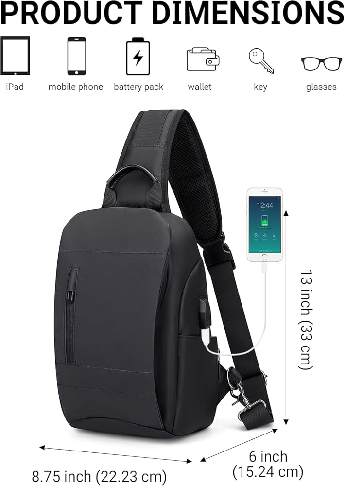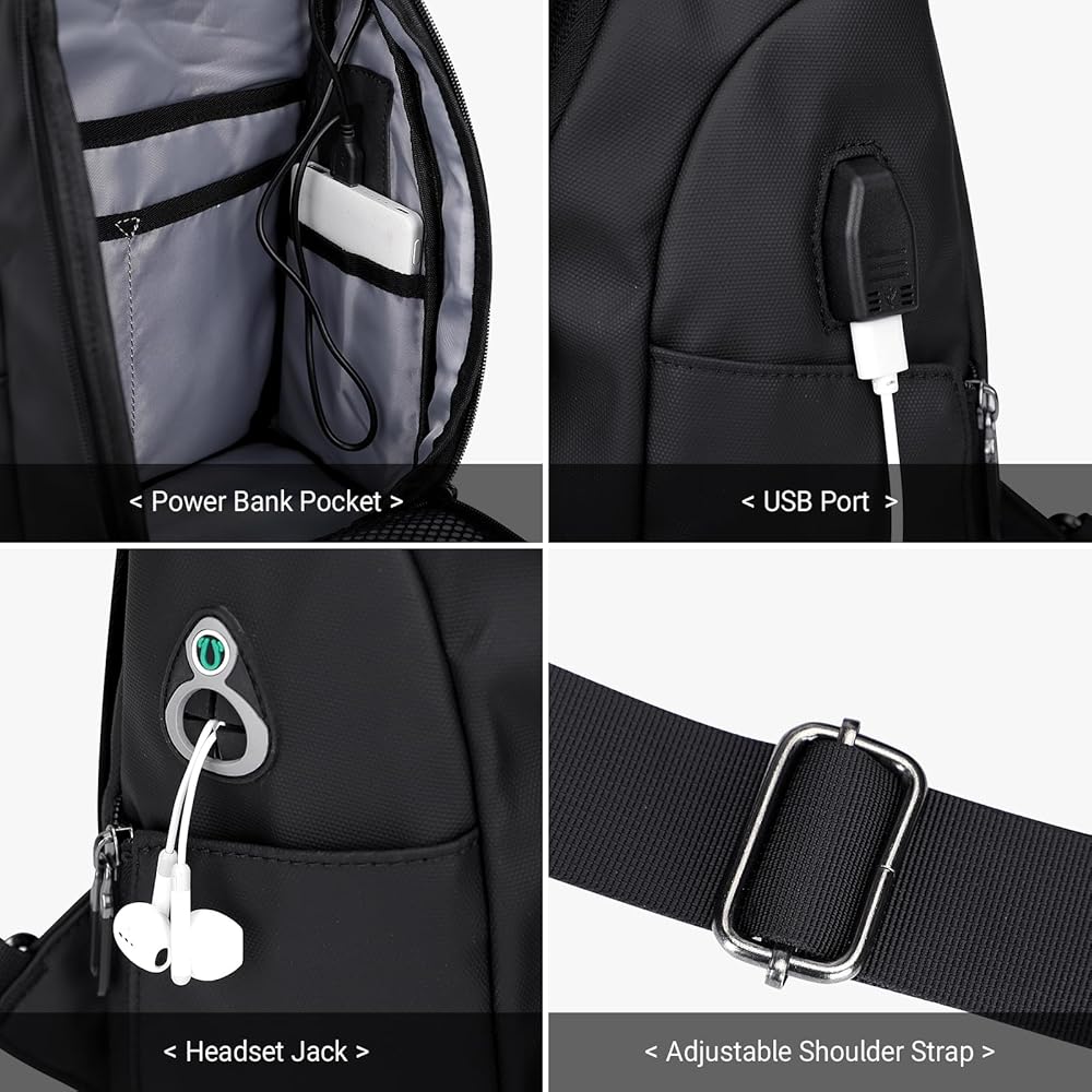 تصميم مريح لمنفذ USB ومنفذ سماعة الرأس: مع شاحن USB مدمج ومنفذ سماعة الرأس بالخارج وكابل شحن مدمج بالداخل، راحة كبيرة لشحن أغراضك الإلكترونية من خلال توصيل بنك الطاقة الخاص بك. يوفر لك طريقة أكثر ملاءمة لشحن هاتفك والاستماع إلى الموسيقى أثناء التنقل دون استخدام اليدين. يرجى ملاحظة أن هذه الحقيبة لا تعمل بالطاقة نفسها، فمنفذ الشحن USB يوفر فقط سهولة الوصول للشحن.