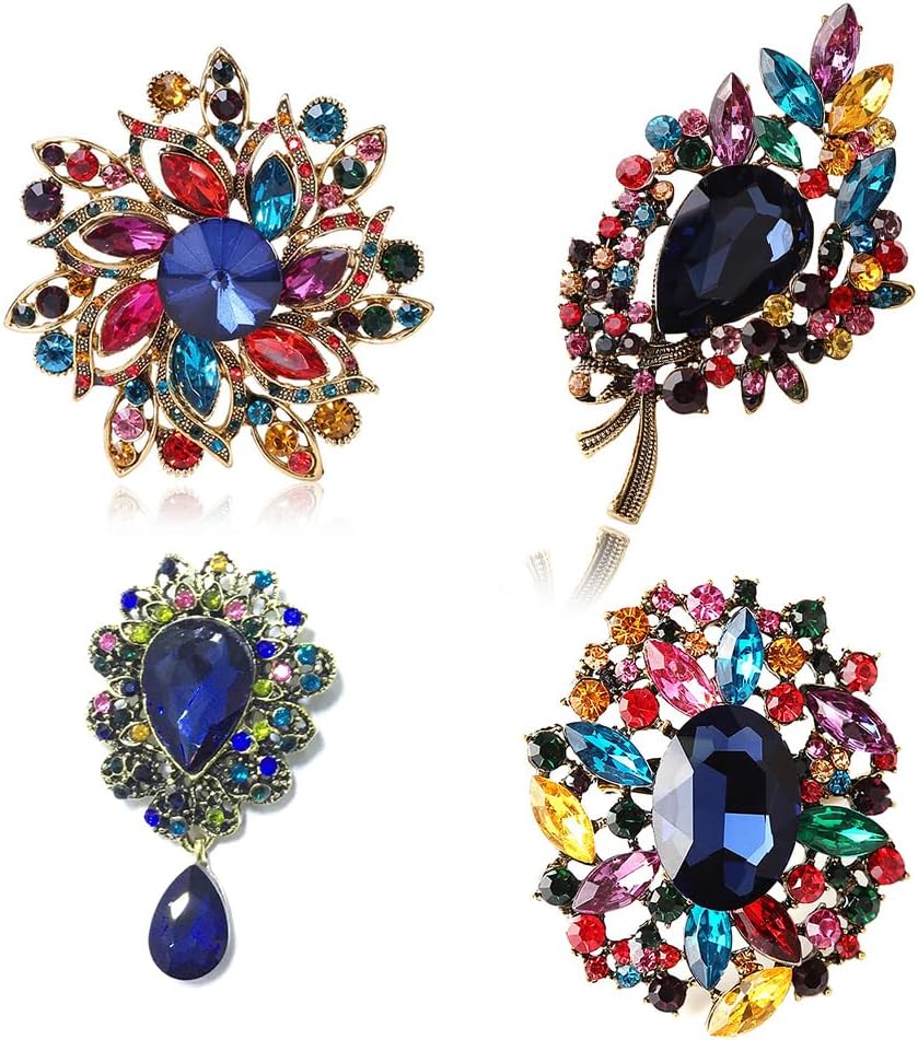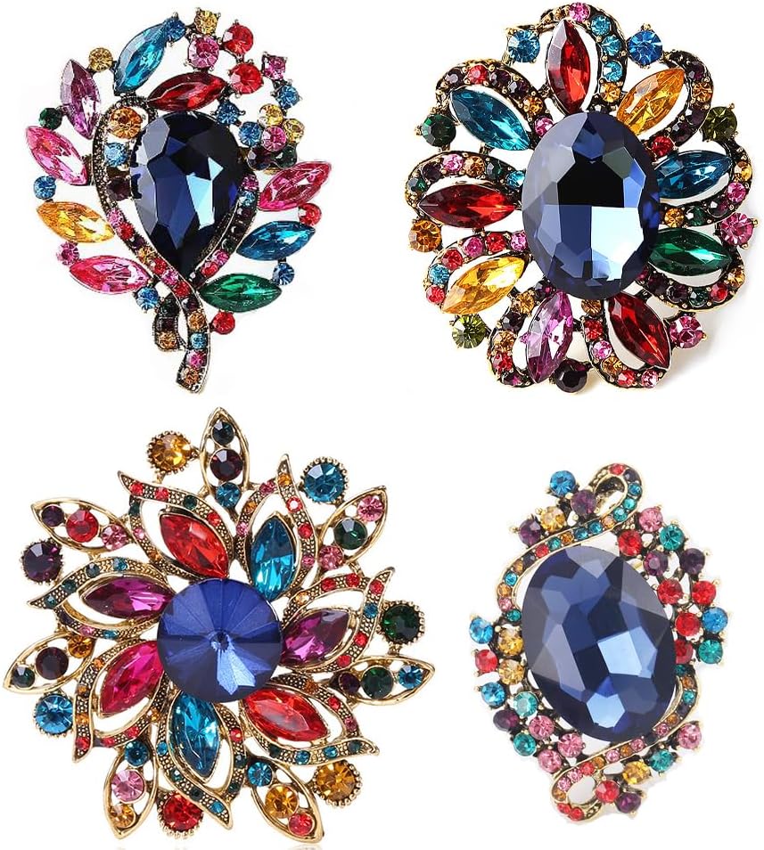 حزمة مع 4 قطع كبيرة الحجم نمط مختلف دبابيس حجر الراين الكريستال الأزرق مجموعة مجموعة
