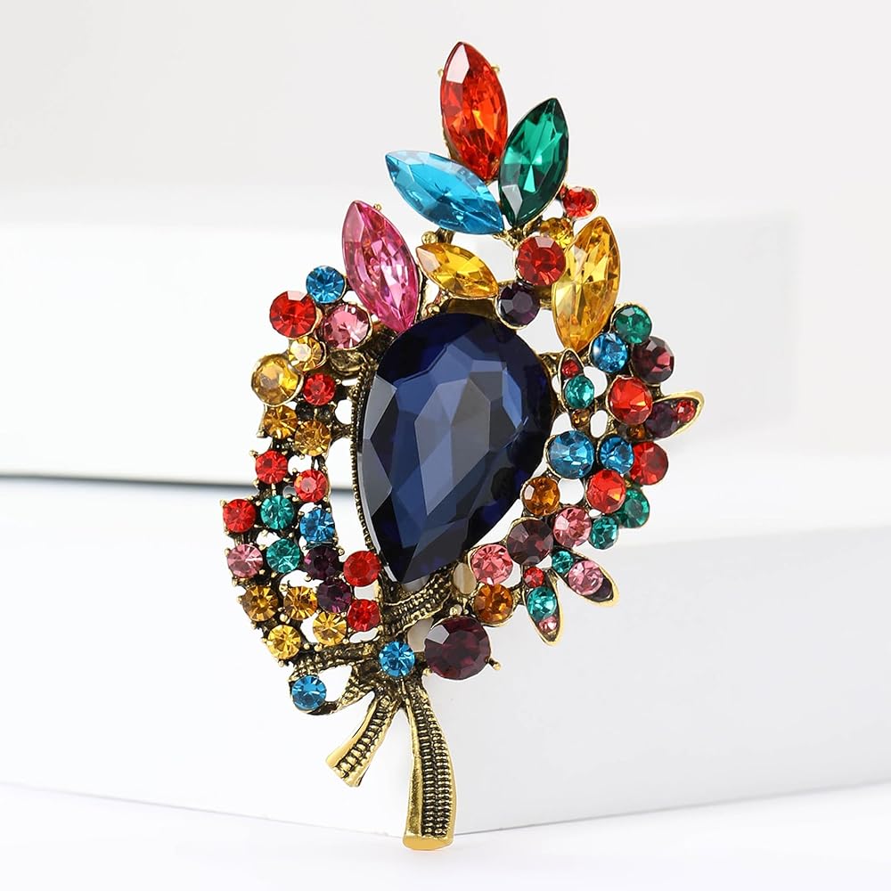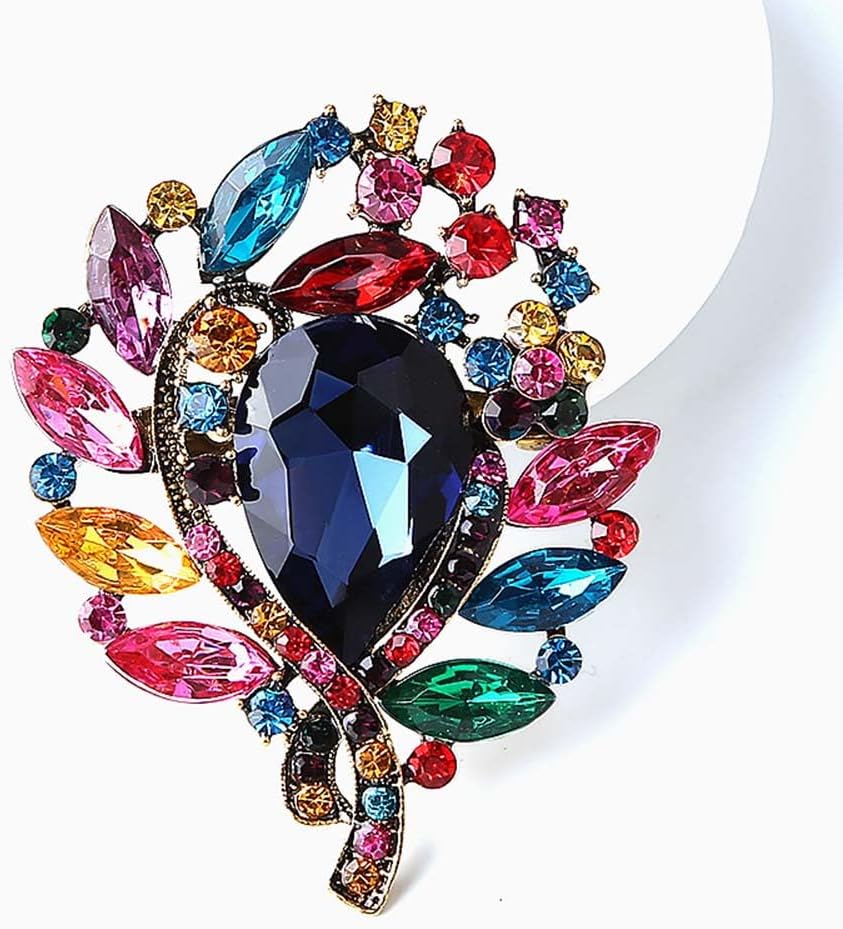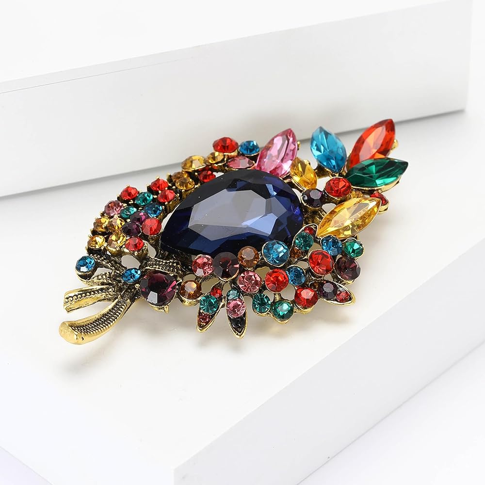 --- مطلي بالذهب العتيق، الجزء الأمامي مرصع بكريستال حجر الراين الأزرق الكبير، والظهر مزود بدبابيس