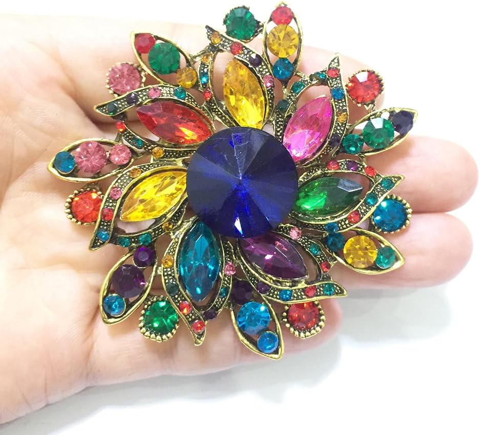 المقاس تقريبي 2.1 بوصة - 2.8 بوصة، حجم كبير كبير، زهرة ساحرة أنيقة بتصميم كبير من حجر الراين