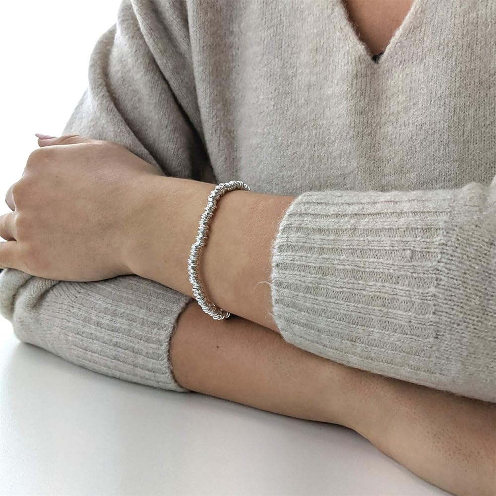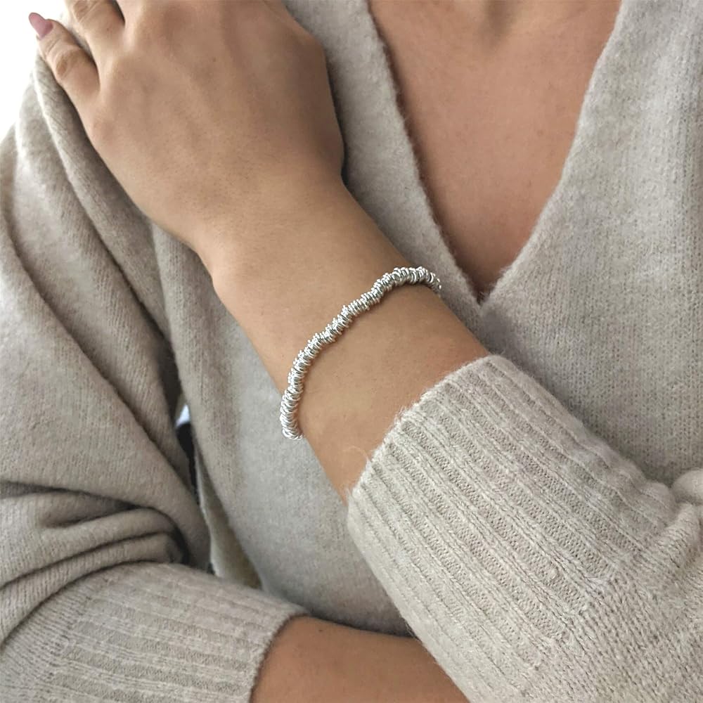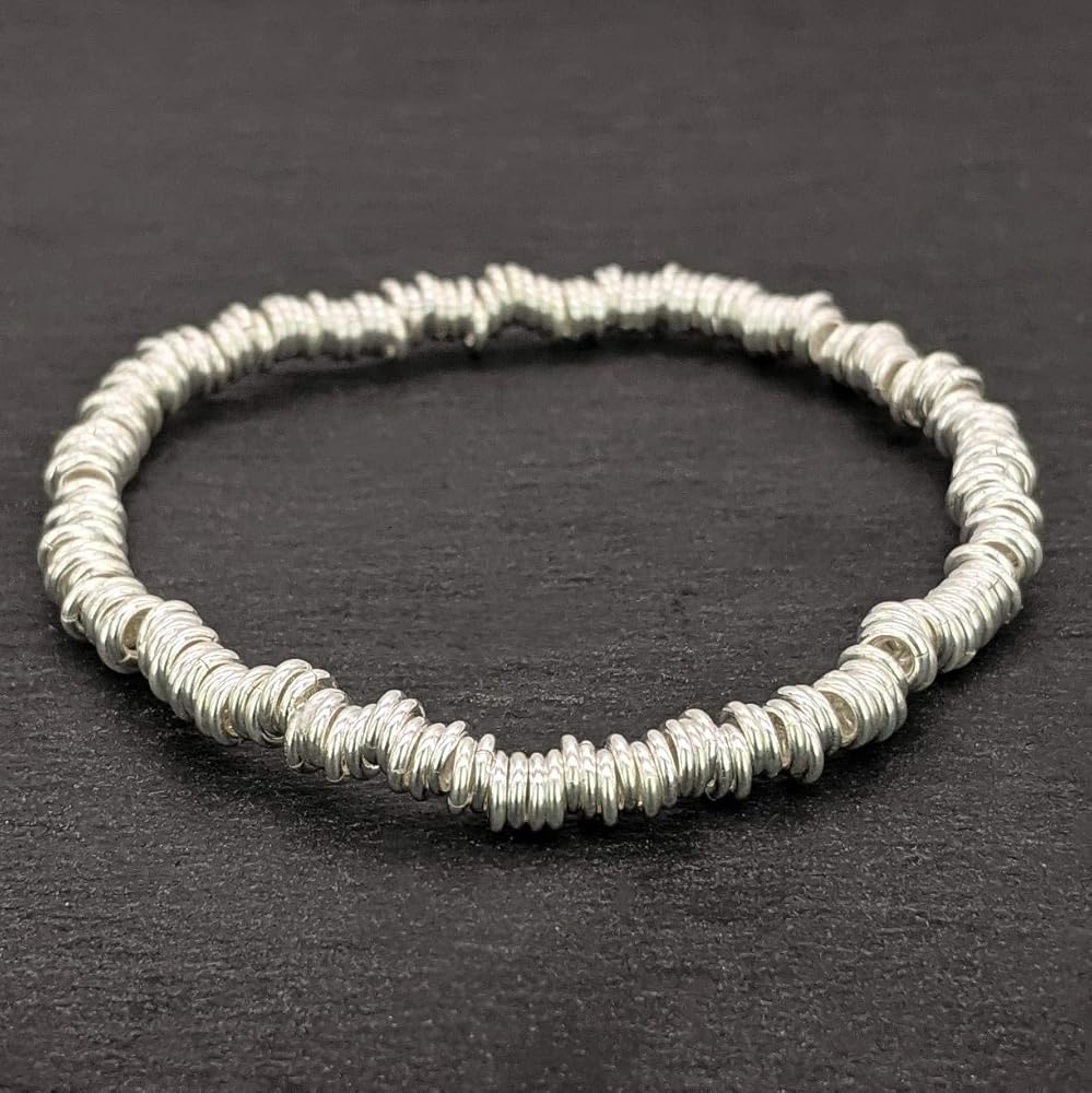 سوار مطاطي مع حلقات فضية متعددة. مثالية لربط أي مشبك بالحلي.
