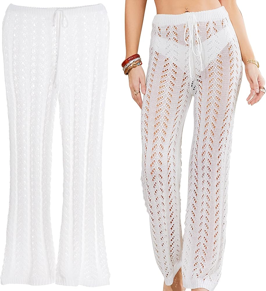 • Soft Material: The swimsuit cover up pants are made of nice quality acrylic fiber, which are comfortable and soft to wear, knitted with hollow out design, adding see through fashion style, give you a cool summer when travelling.