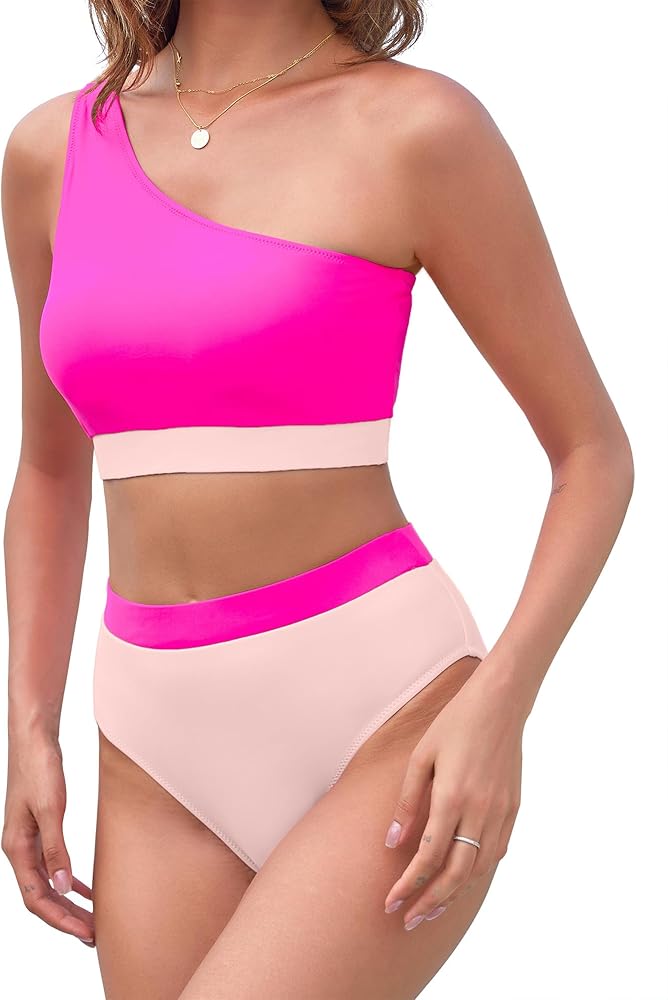 ❤ بدلة استحمام نسائية داعمة بكتف واحد. تميّزي بأناقة مع ملابس السباحة المثيرة غير المتكافئة - التي تتميز بتصميم عصري على شكل كتلة ألوان وبطانة قابلة للإزالة لراحة قابلة للتخصيص، مجموعة البكيني المرفوعة ستوفر دعمًا جيدًا للصدر الكبير.