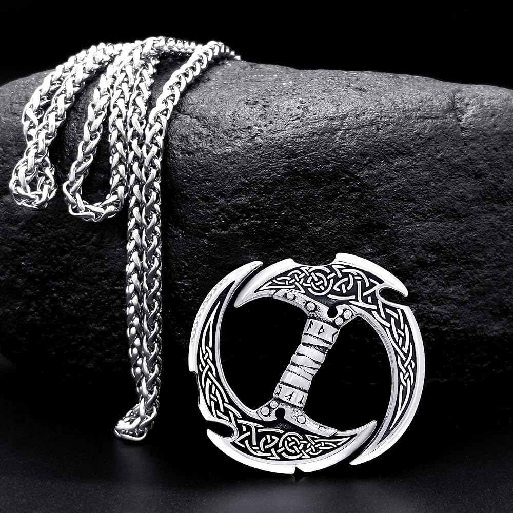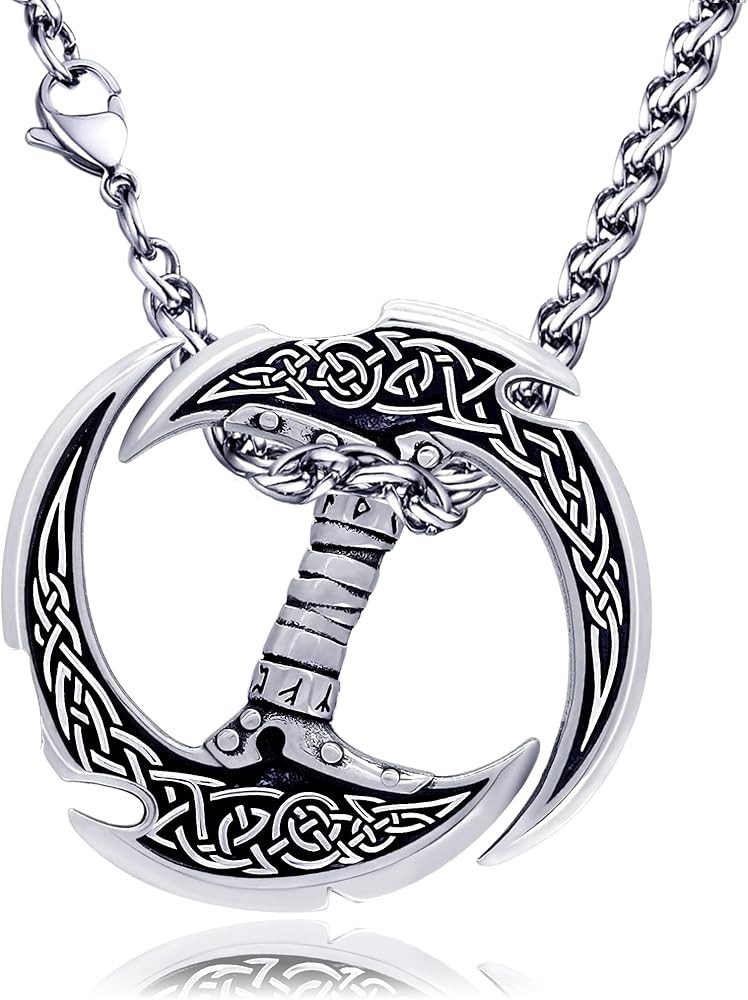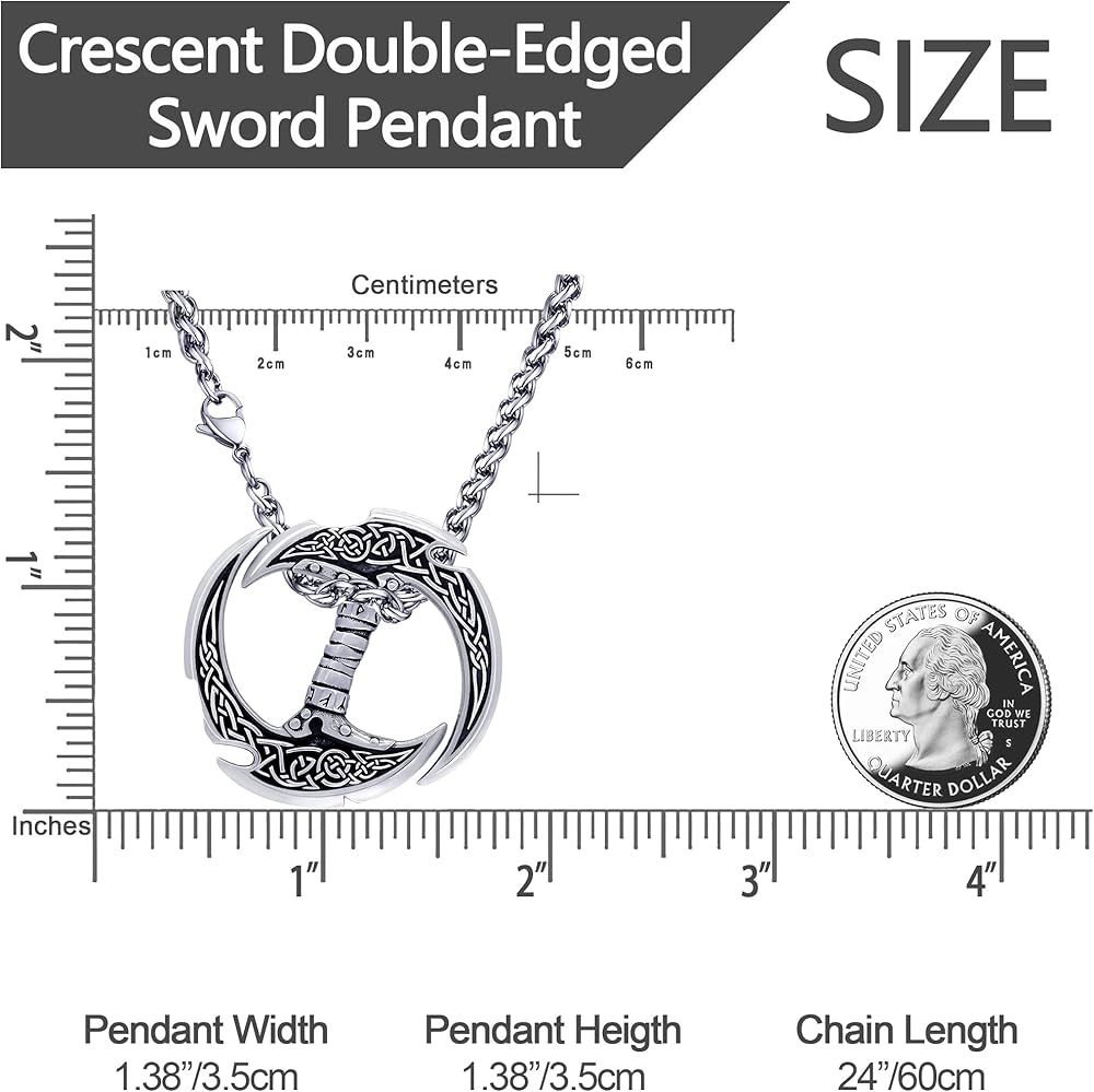 Crescent Double-Edged Sword Necklace: Like Viking Axe Necklace, Thor's Hammer Necklace and Viking ArrowHead Necklace, Dragon Necklace, Gothic Necklace for men women, it is also designed for men and women who like Viking jewelry. It features a finely carved celtic knot.