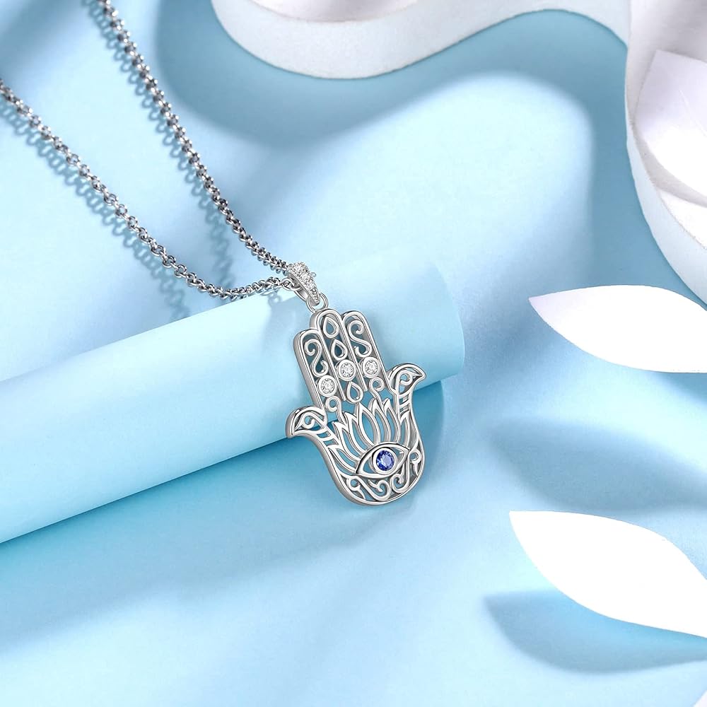 • ❤ The Hamsa is the symbol of the hand of God, is believed to promote health, happiness, good luck and fortune. Combined with Lotus Yoga, and evil eye, this hamsa necklace is a strong protective talisman that intercept negative or evil energy. May this hamsa necklace will bring luck and happiness to you and protect you.