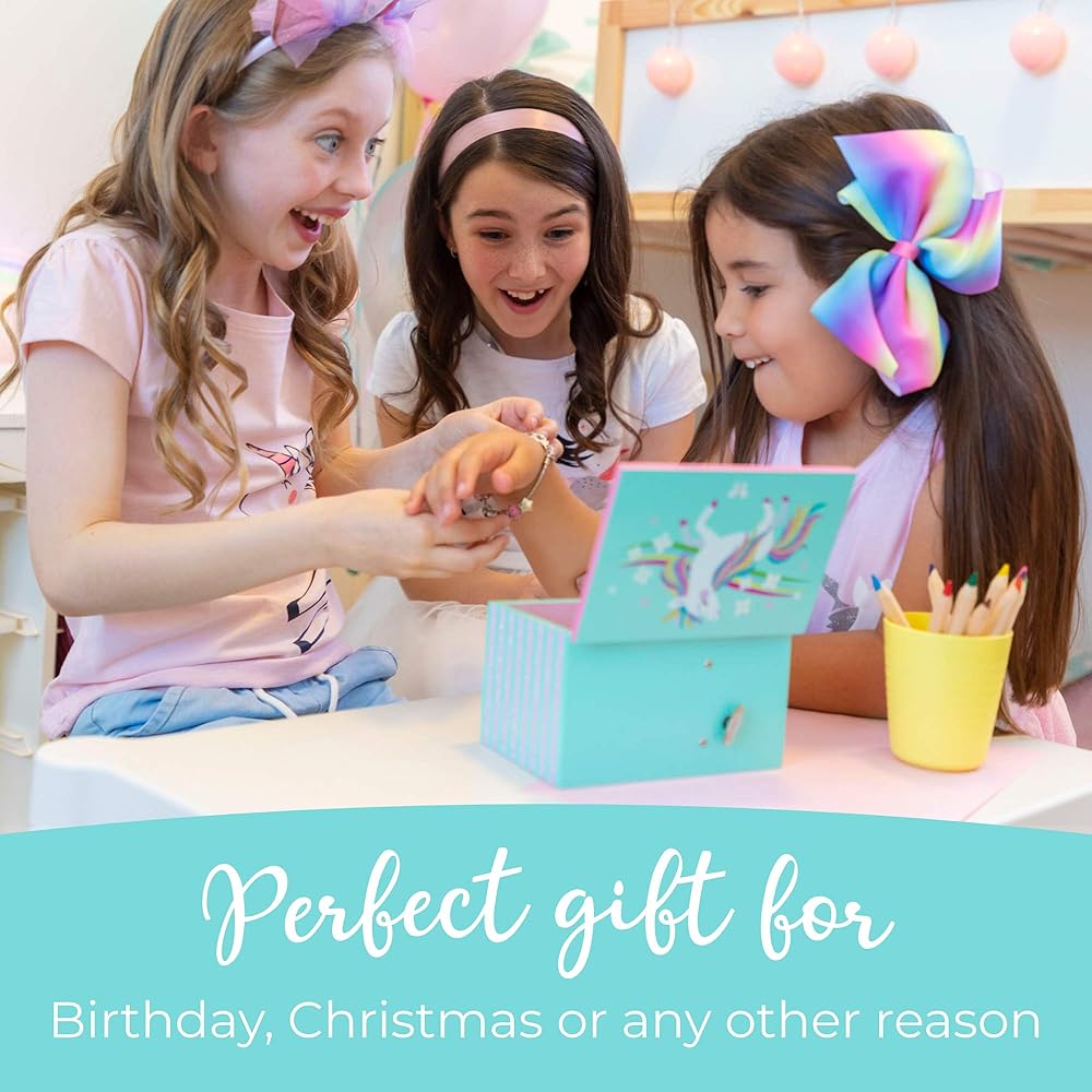 عندما تريد كل ما تريده هو هدايا وحيد القرن - إذا كانت الفتاة الصغيرة في حياتك مجنونة باليونيكورن، فإنها تصبح متحمسة للغاية لأشياء اليونيكورن. لذا، عندما يتعلق الأمر بهدايا الفتيات في فئة يونيكورن، فإن هذا السوار سيخلق تلك اللحظة "المبهرة". إذا كنت تبحث عن هدايا يونيكورن أخرى للفتيات، فراجع صندوق المجوهرات الموسيقي يونيكورن الخاص بنا
