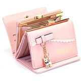After owning many very nice leather (and eel skin) wallets, I wanted something that was still long in shape but needed to drop the weight that leather and its hardware generally have and this does just that without feeling flimsy. Also, this doesn't get scratched up and hasn't worn one bit so for the price, you can't go wrong. It is just too cute and doesn't (at least in the black) look overly childish either , which was another concern. I feel very comfortable pulling this out of a $500 handbag as well as a $20 sportier cross body.