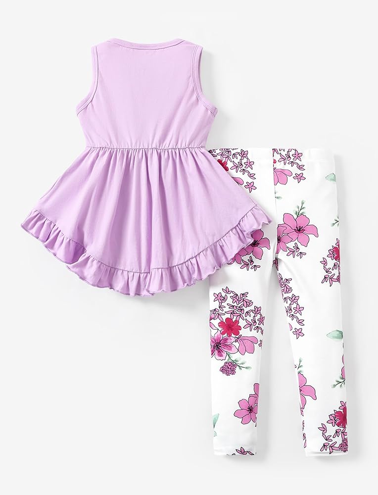 تصميم رائع: تتميز هذه المجموعة المكونة من قطعتين للفتيات الصغيرات بجزء علوي ساحر بدون أكمام مع حاشية مكشكشة مبهجة، مما يضيف لمسة من الجاذبية إلى خزانة ملابس طفلك الصغير. يتم استكمال المجموعة بسروال ضيق مزين بالزهور، مما يخلق مجموعة أنيقة ومرحة.