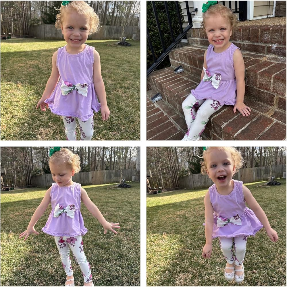 نمط متعدد الاستخدامات: يمكن مزج الجزء العلوي بدون أكمام والسراويل الضيقة ذات الأزهار ومطابقتها مع قطع أخرى في خزانة ملابس طفلك، مما يوفر تنوعًا في مناسبات مختلفة. ارتديه للمناسبات الخاصة أو اجعله كاجوال للعب اليومي.