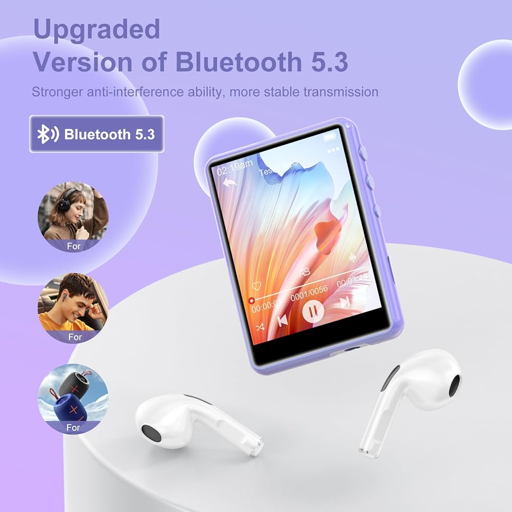 مشغل Mp3، مشغلات MP3 مقاس 2.4 بوصة مع بلوتوث 5.3، مشغل موسيقى HiFi يدعم راديو FM، تسجيل صوتي، كتاب إلكتروني، مشغل موسيقى رقمي محمول مدمج عالي الدقة، سماعات أذن متضمنة، أرجواني