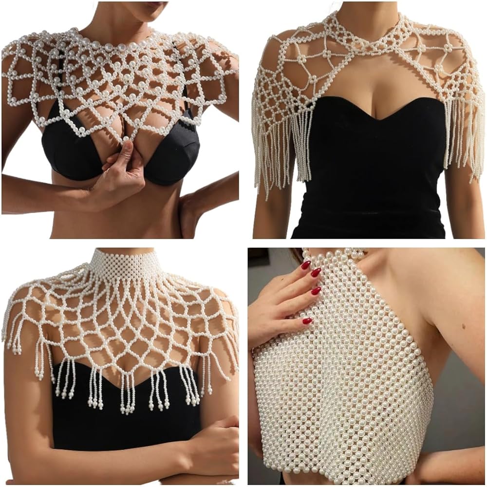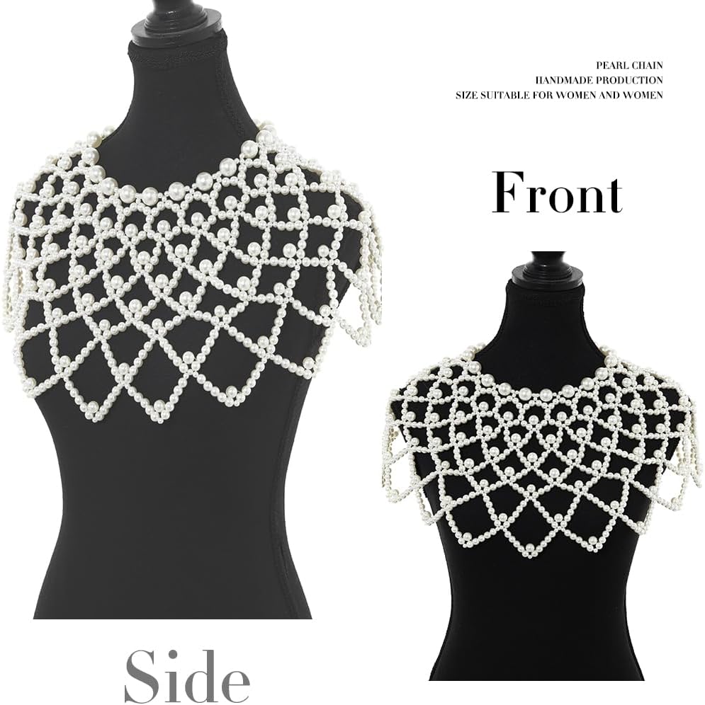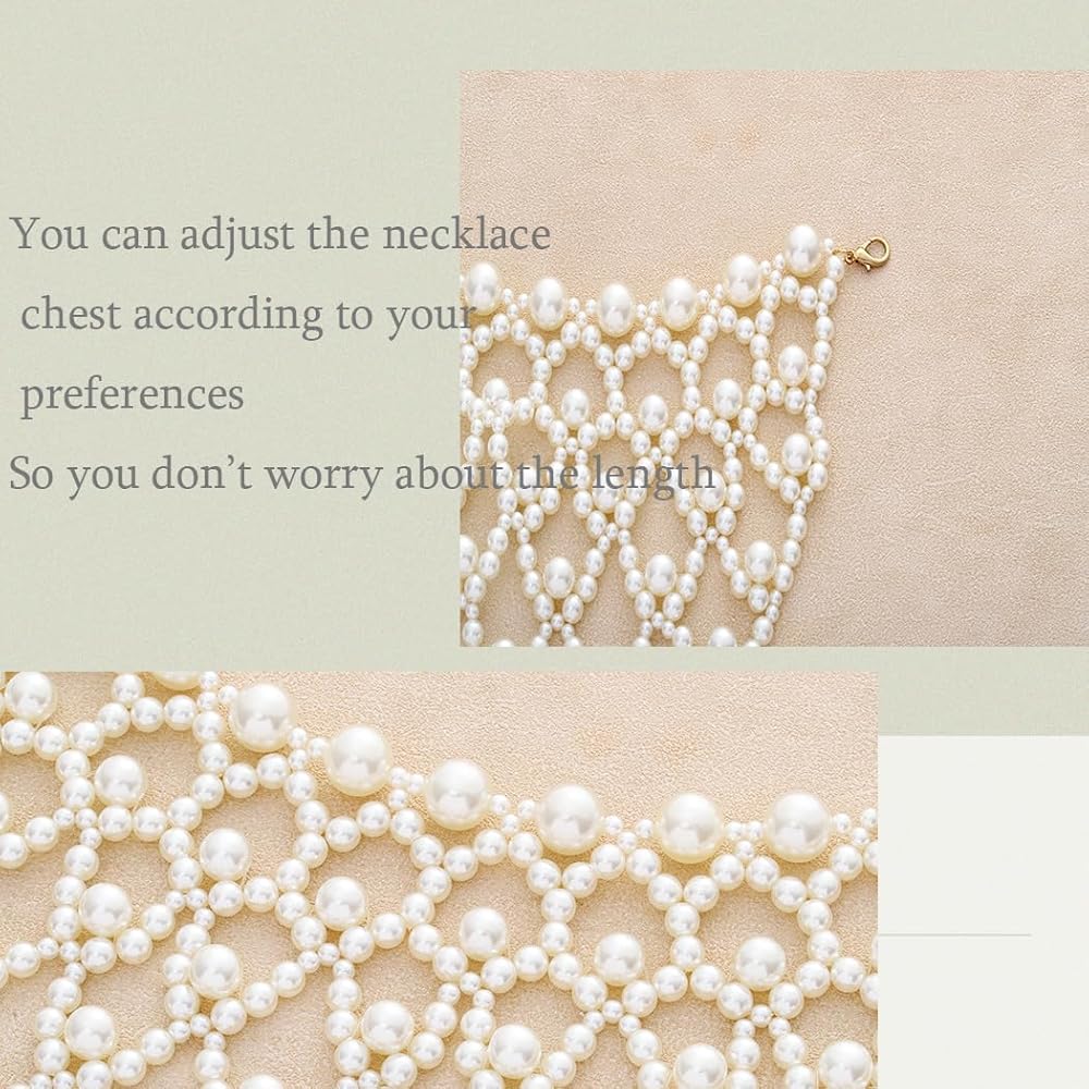 • سلسلة الجسم قلادة الشال مصنوعة يدوياً من اللؤلؤ الأبيض، وحجمها يناسب النساء جيداً، ويمكن تعديلها بشكل مناسب مع السلسلة الممتدة، يمكنك ضبط القلادة والصدر حسب تفضيلاتك. لذلك لا تقلق بشأن طول