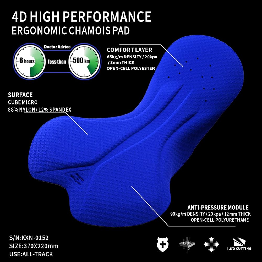 【بطانة عالية الكثافة رباعية الأبعاد】يوفر الغطاء المبطن رباعي الأبعاد دعمًا ممتازًا ويقلل الاحتكاك بينك وبين مقعد دراجتك لمدة تصل إلى 6 ساعات و310 ميل، مع راحة فائقة وتهوية ومرونة للحصول على أقصى درجات الراحة حتى في الرحلات الطويلة.