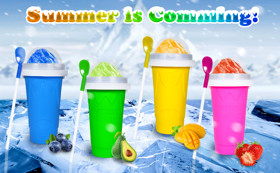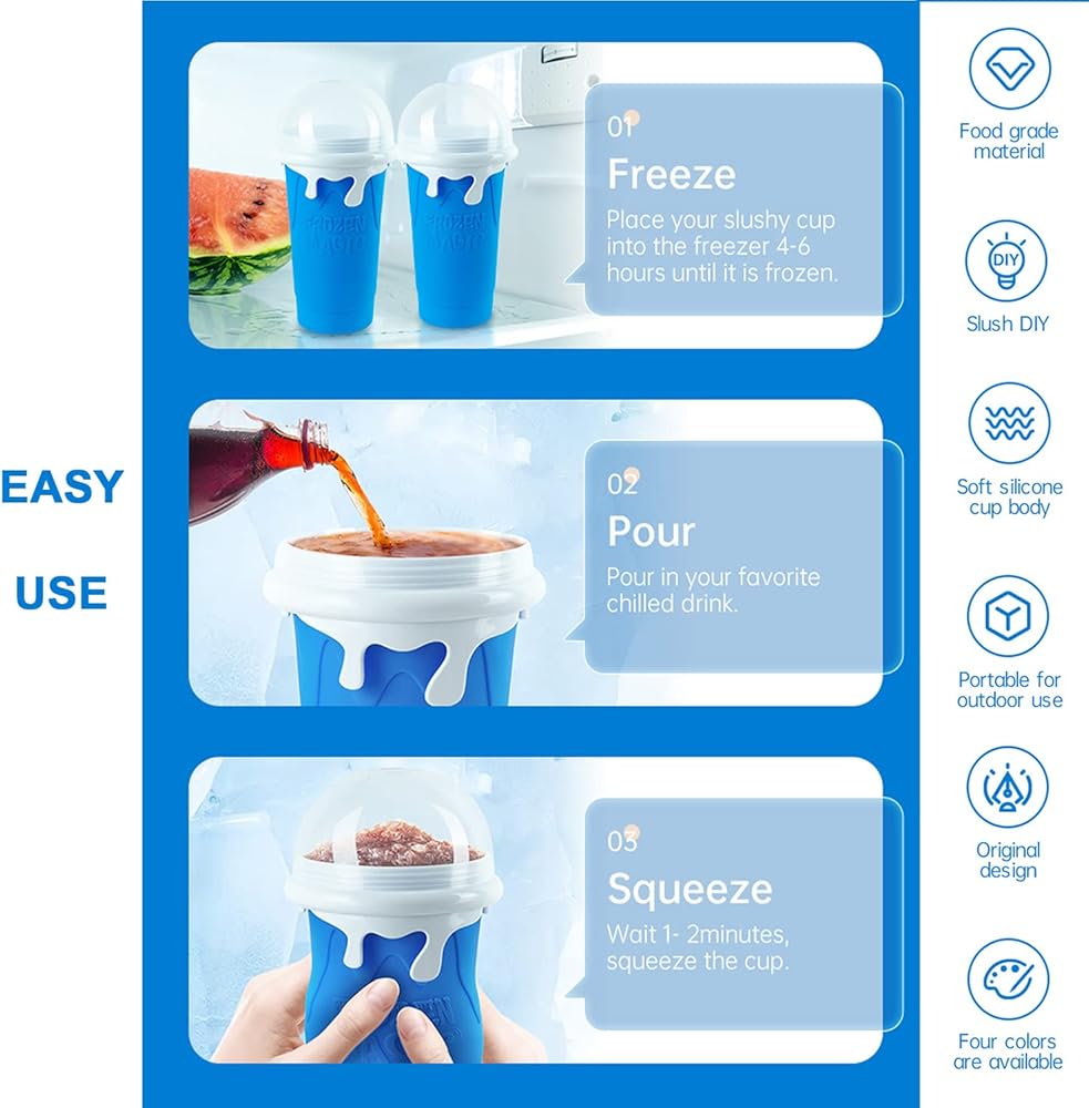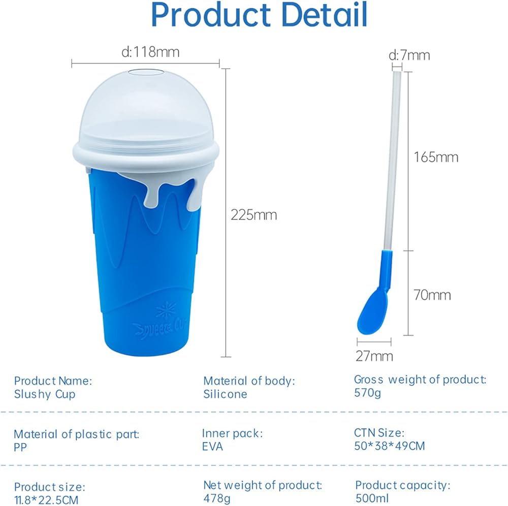 متعة سحرية: من خلال سائل التجميد المدمج المتبادل الحراري (الملح والماء، لا تستخدمه أو تشرب في حالة التسرب)، لا حاجة إلى كهرباء مثل آلة الآيس كريم، فقط استمر في الضغط ثم يمكنك صنع سلاش لذيذ في أي وقت وفي أي مكان، آمن وصحي.