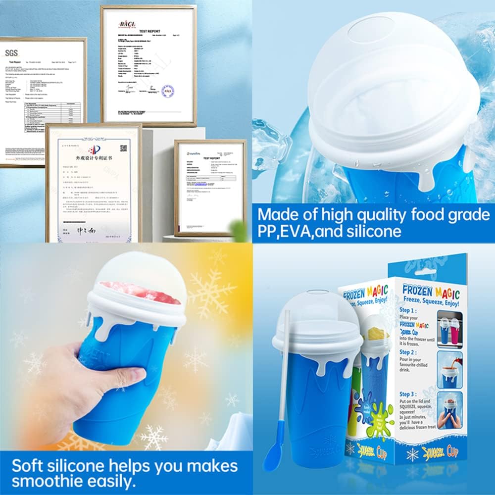 ترقية كأس صانع صانع Slushy 500 مل Tik Tik Tok Cool Stuff Frozen Frozen Magic Squeeze Cup مثل آلة صانع الآيس كريم Slushie ، كوب سليسي للطبقة المزدوجة للعصائر المجمدة ، هدايا عيد ميلاد باردة (أزرق)