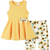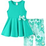 تصميم عصري: تجمع هذه المجموعة من ملابس الفتيات بين الموضة والراحة. يبرز تصميم السترة بدون أكمام في الجزء العلوي شخصية الأميرة الصغيرة المرحة. تضيف زخرفة القوس الفريدة عند الخصر لمسة من الحلاوة إلى المظهر العام.