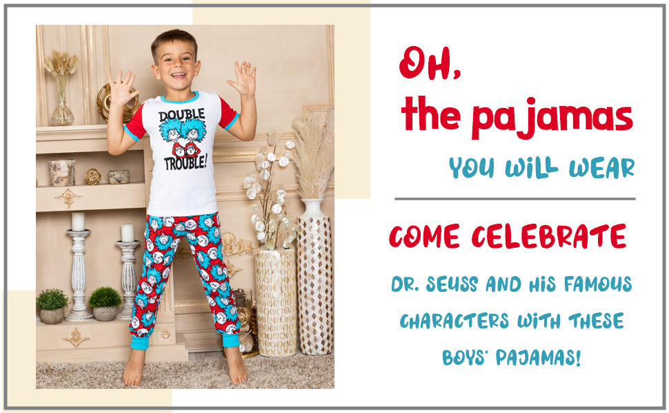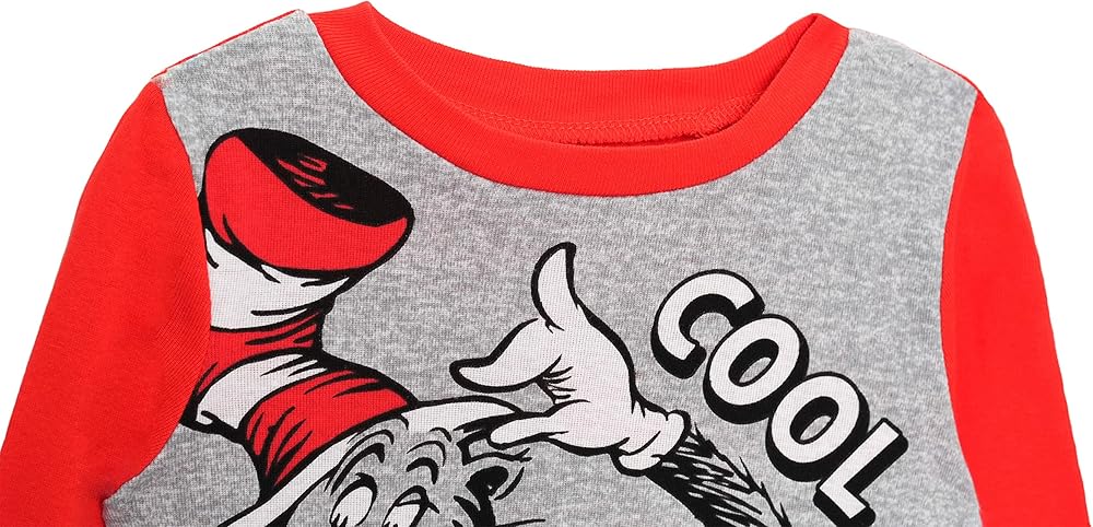 نوم مريح: ناعمة وعملية، تم تصميم بيجامات دكتور سيوس هذه مع وضع الأطفال في الاعتبار. تحمل القمصان تعليمات الغسيل الخاصة بشعار العلامة التجارية مطبوعة على الجزء الخلفي من الداخل حتى تعرف أنها منتج أصلي. لن يواجه طفلك أي مشكلة في الانتقال من وقت اللعب إلى النوم المريح أثناء الليل بهذه القمصان!