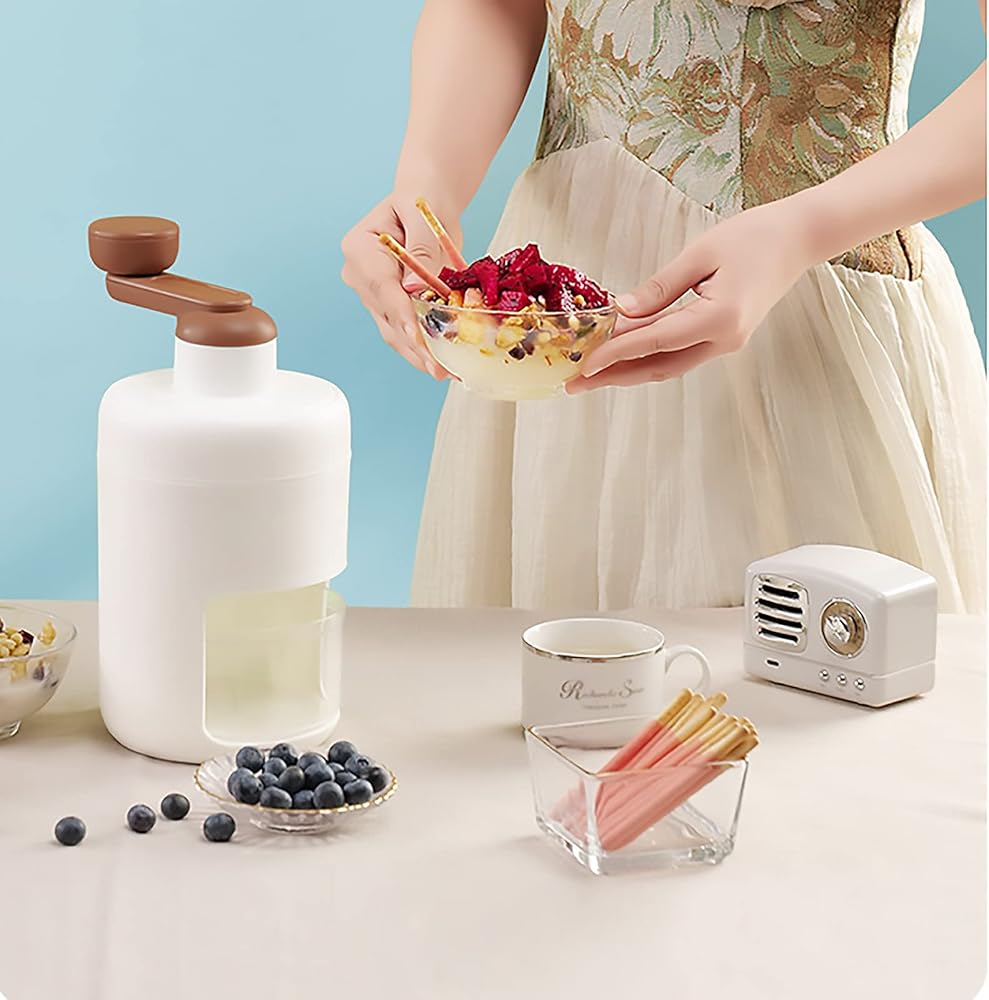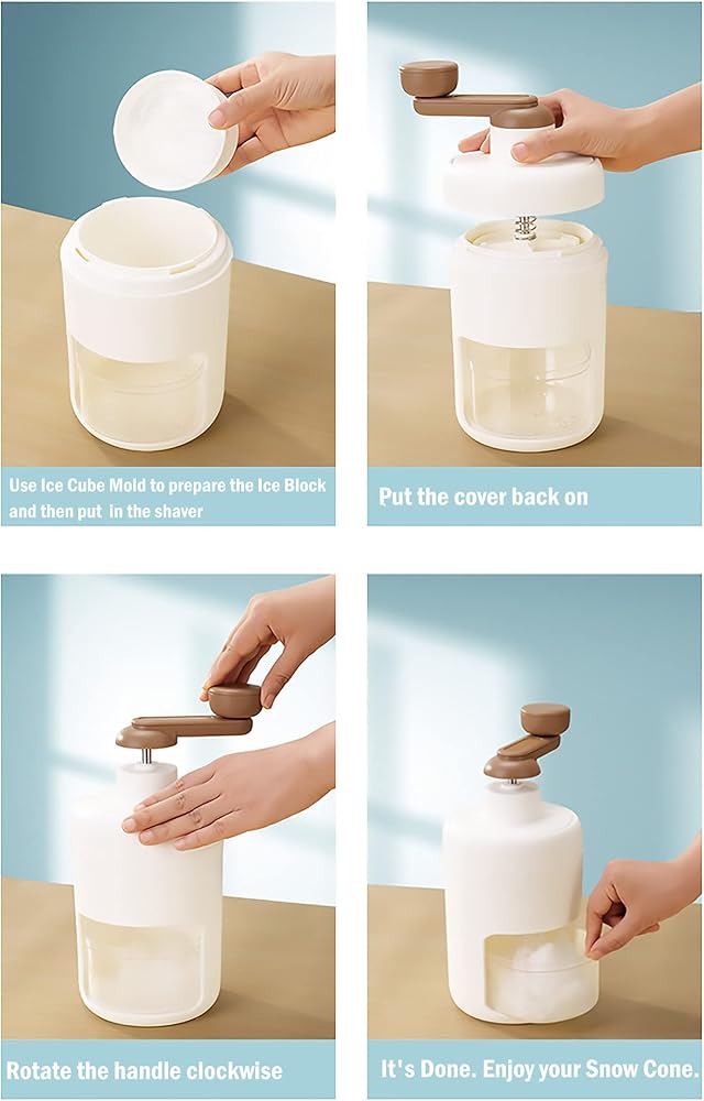 【متضمنة】1 ماكينة حلاقة ثلج و1 قالب مكعبات الثلج. آلة صنع مخروط الثلج متاحة بسهولة للسلاشي والمارجريتا والمشروبات المضحكة والمزيد.