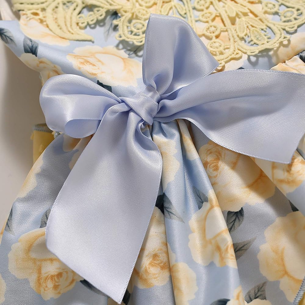 • نمط زهرة دانتيل جميل في الأمام وزخرفة فيونكة كبيرة جميلة على الظهر. تبدو أكثر جمالاً وجاذبية، دع فتاتك تتلقى الكثير من الإطراء.