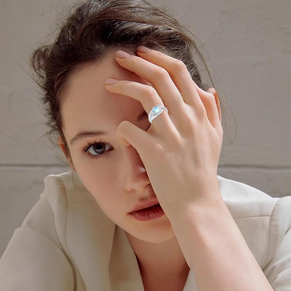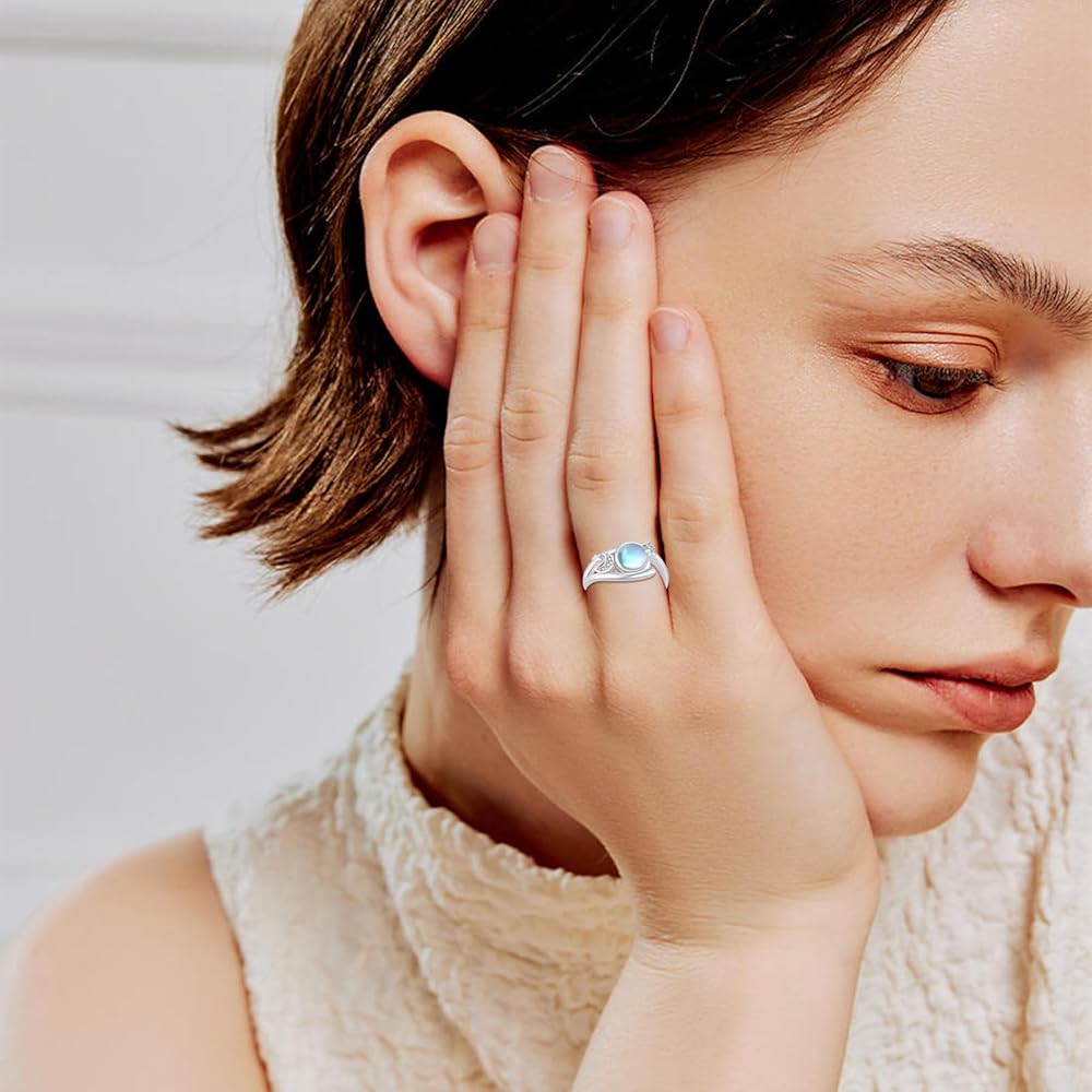 خاتم CRWENG Moonstone 925 من الفضة الإسترليني خواتم القمر والنجمة مجوهرات هدايا عيد الحب للنساء والفتيات والبنت