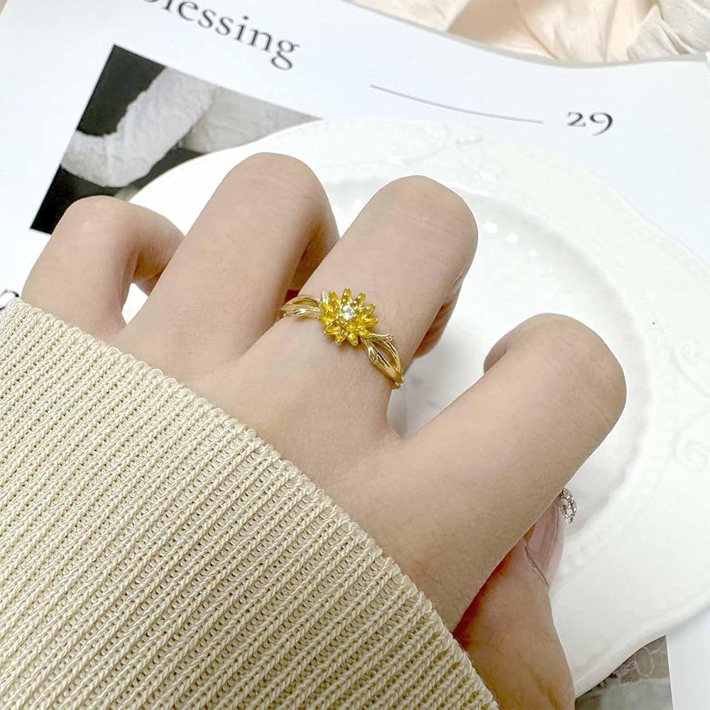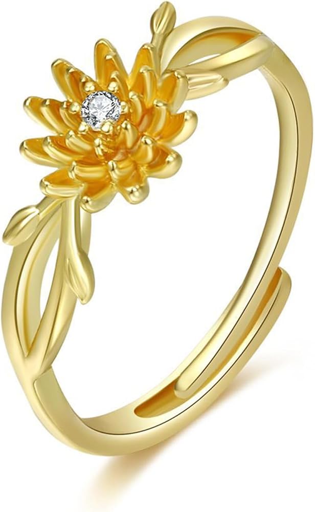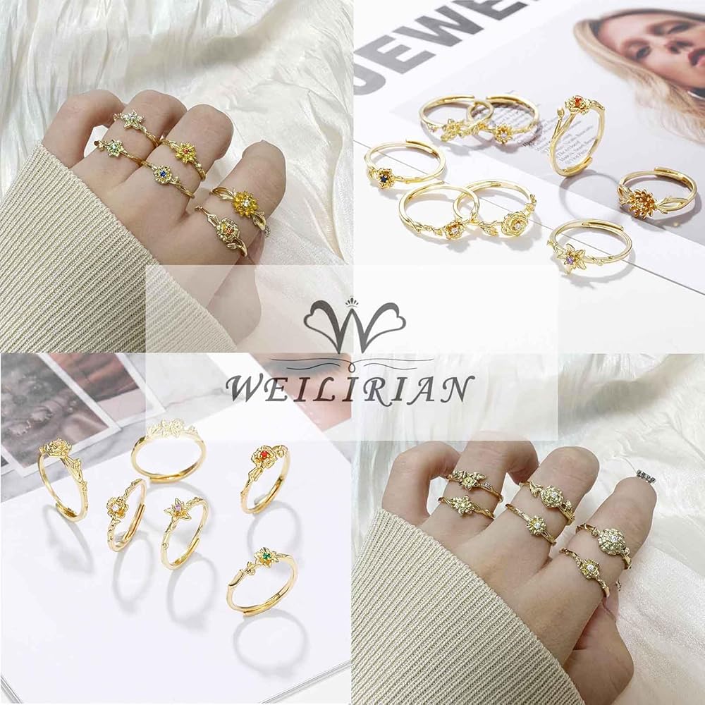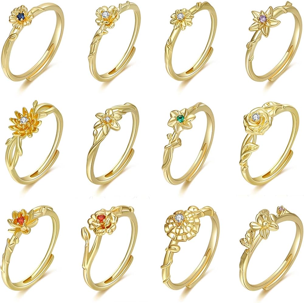 خاتم زهرة كريستال من W WEILIRIAN خاتم زهرة قابل للتعديل للفتيات عيد ميلاد شهر زهرة خاتم (1-12 شهرًا) خاتم نسائي مطلي بالذهب متراص خاتم زفاف مجوهرات عيد ميلاد للبنات هدايا