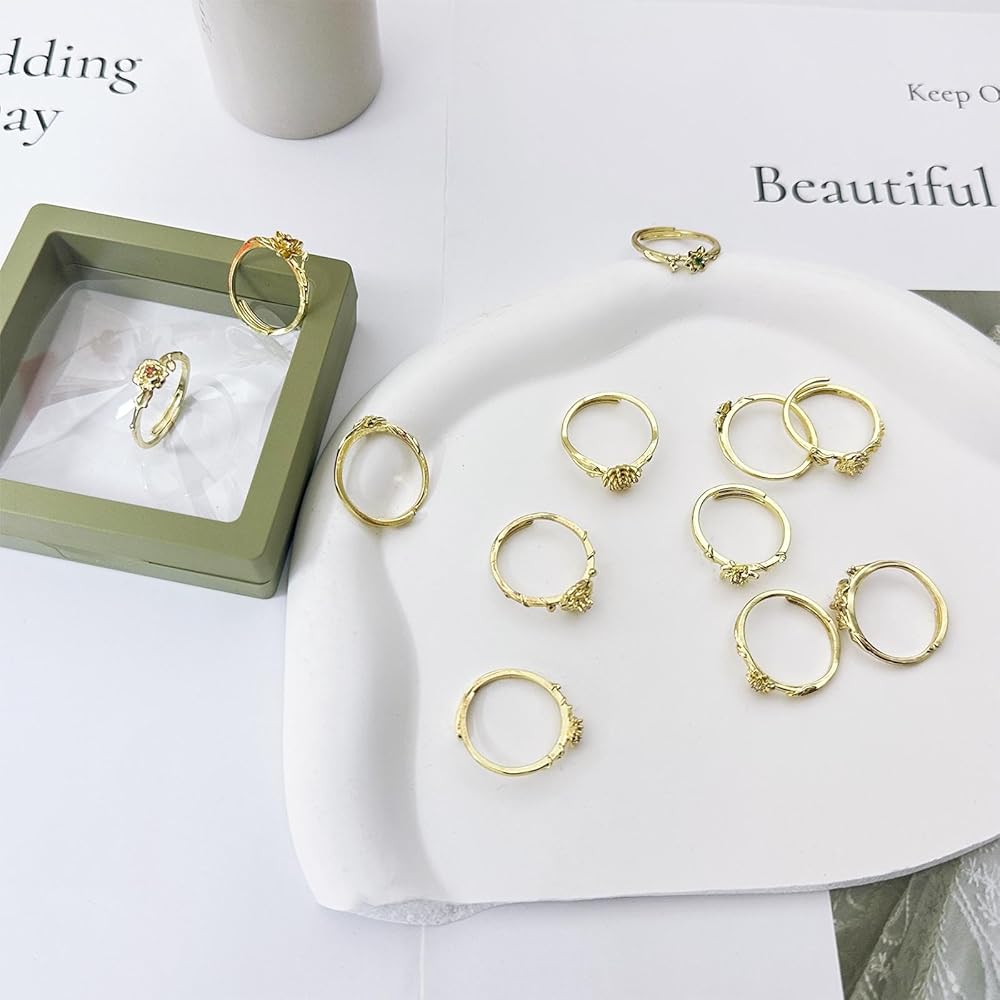 المادة والأبعاد: تصميم قابل للتعديل: القطر 0.7 بوصة (1.8 سم) الوزن: 1.5 جم (قطعة واحدة). تم تصميم خاتم الزهرة الذهبية الخاص بنا بدقة واهتمام بالتفاصيل، وهو مصنوع من مواد ذهبية عيار 14 قيراط مصممة لتدوم طويلاً. تضمن المواد عالية الجودة أن يحافظ الخاتم على لمعانه وجماله لفترة طويلة.