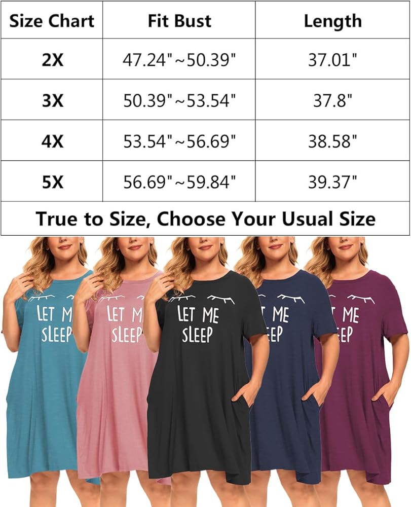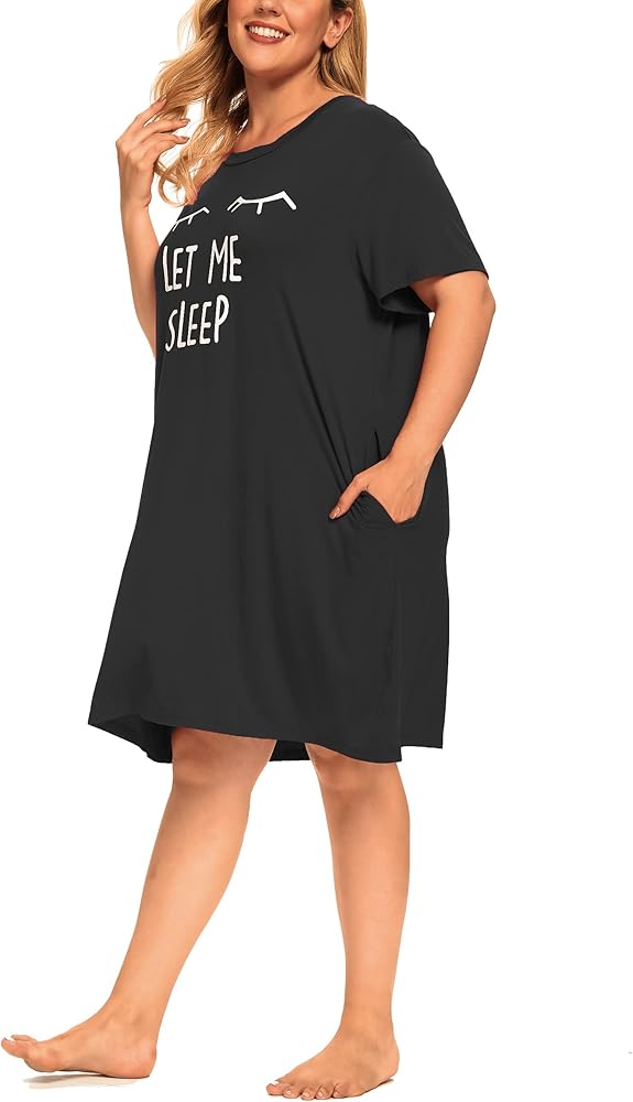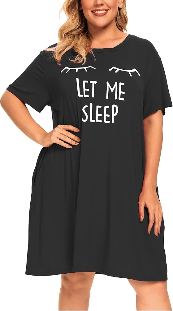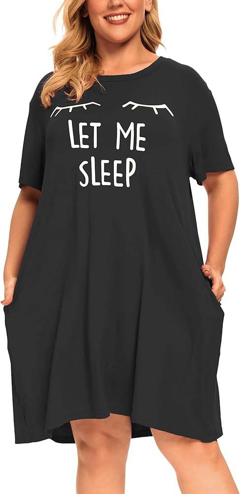 【المميزات】ملابس نوم بمقاس كبير تتميز برقبة دائرية، وأكمام قصيرة، وطول فوق الركبة، وطباعة جرافيك لطيفة "Let Me Sleep"، وجيبين جانبيين، وقص فضفاض وفضفاض. فستان بسيط وأساسي للنوم في خزانة ملابسك.