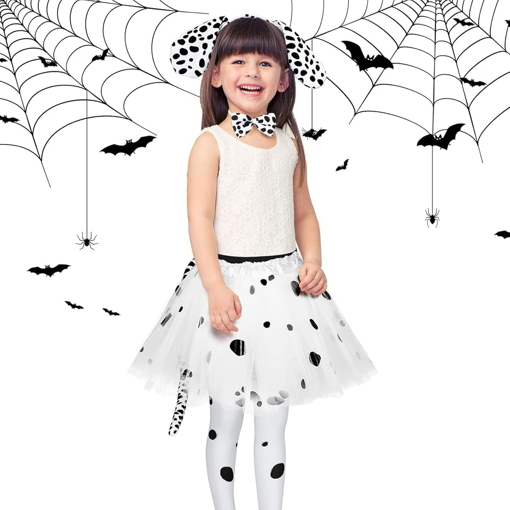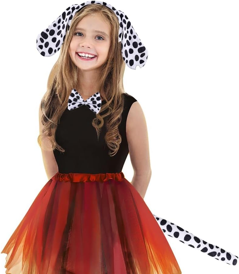 eyigylyo هالوين الدلماسي زي مجموعة آذان الكلب عقال الدلماسي ضيق الذيل ربطة العنق للأطفال فتاة هالوين عيد الميلاد تأثيري حلي