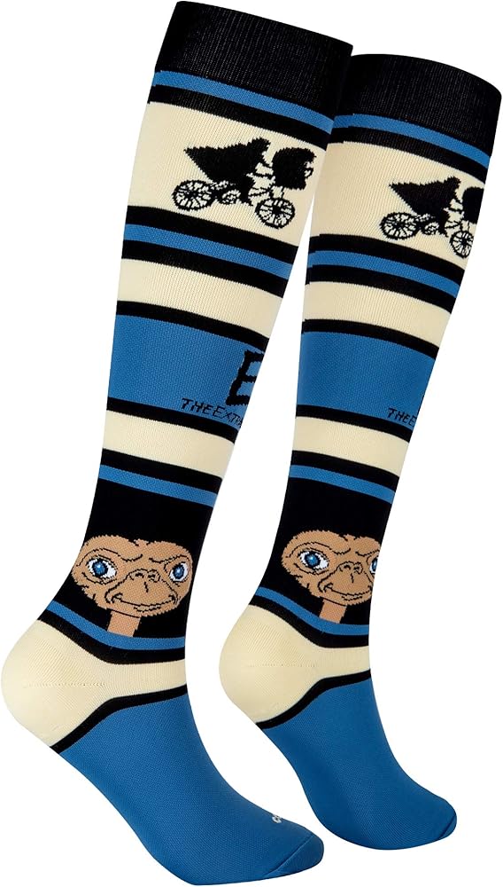 ارتدي زوجًا من هذه الأحذية المرحة والملفتة للنظر فوق الركبة حتى الركبة من E.T. جوارب سينمائية بطبعاتك المفضلة؛ مرخصة رسميًا وأصيلة؛ كن أنت، كن غريبًا