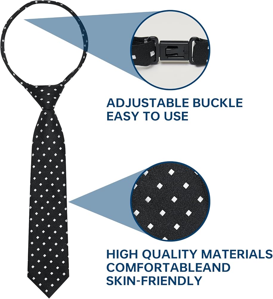 نسيج عالي الجودة - نسيج ربطة العنق هذا مصنوع من الساتان الرقيق جدًا، وصديق للبشرة، وناعم ومضاد للتجاعيد. يمكنك حتى رؤية لمعان طفيف تحت الضوء. مع مجموعة ربطات العنق هذه للأولاد، سيكون عرض طفلك رائعًا. بالإضافة إلى ذلك، فإن عملية الغرز الواسعة تجعل مجموعة ربطات العنق أكثر متانة وراحة في الارتداء.