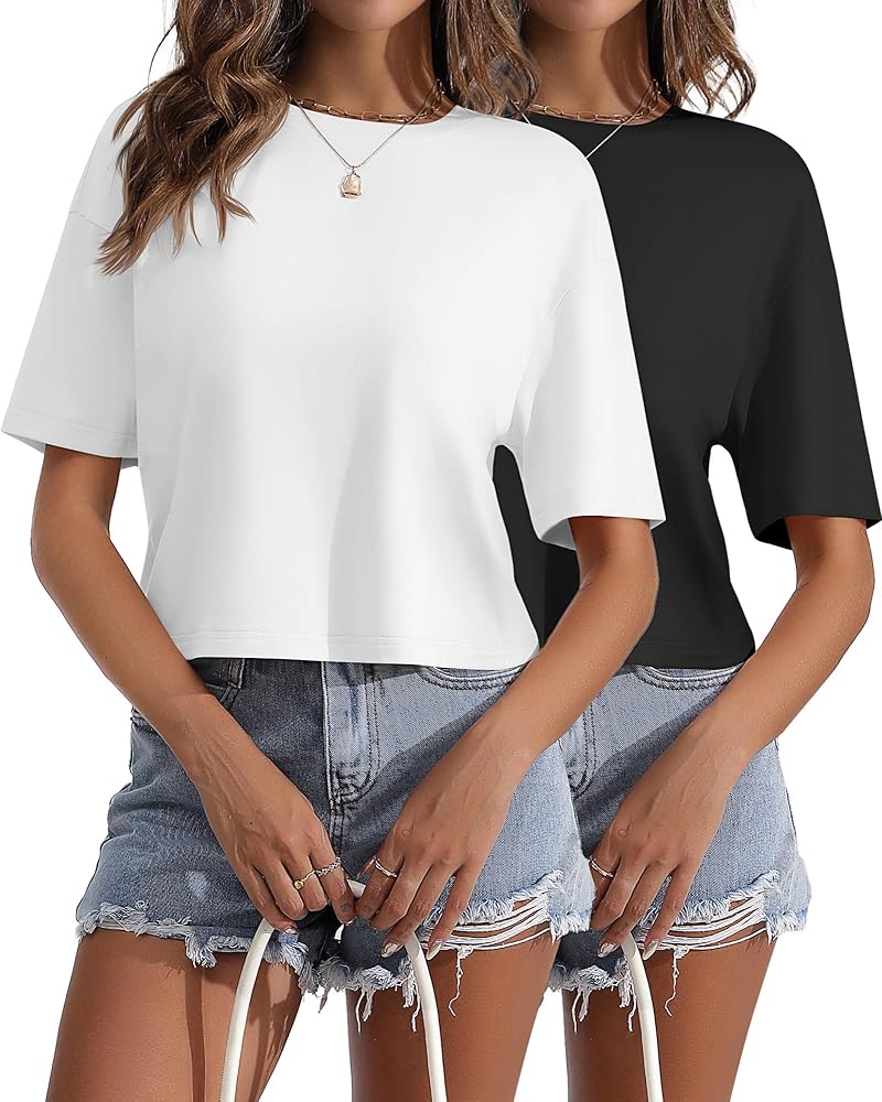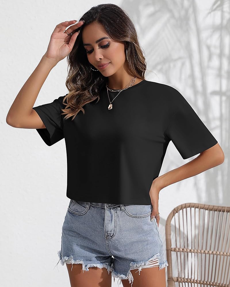 الراحة مع التصميم: استمتع بتوازن متناغم بين الراحة والأناقة مع التيشيرتات النسائية ذات الرقبة الدائرية؛ صُنعت هذه القمصان القصيرة مع الاهتمام بالتفاصيل، وتوفر مقاسًا جذابًا، مما يضمن لك المظهر والشعور بالثقة مع كل ارتداء