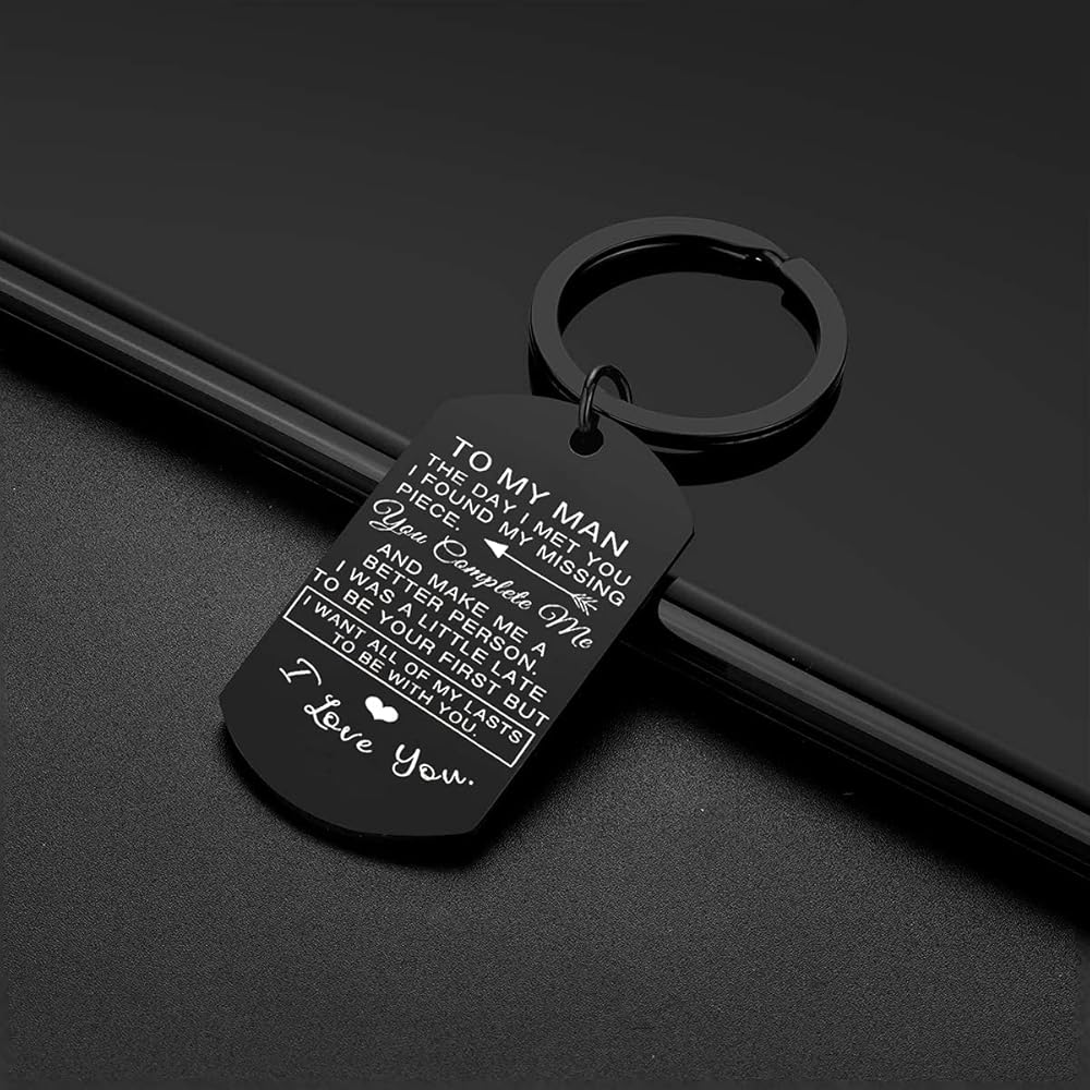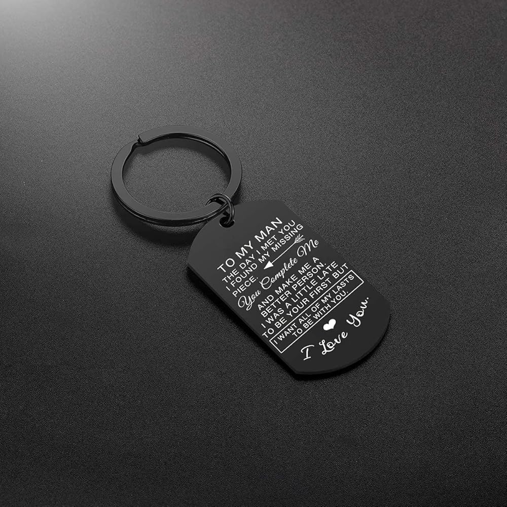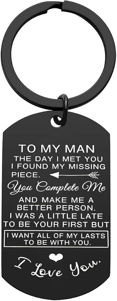 هدايا للزوج من الزوجة: لرجل اليوم ألتقي بك لقد وجدت قطعتي المفقودة. أنت تكملني وتجعلني شخصًا أفضل. لقد كان متأخرًا قليلاً لكوني أول مرة ولكنني أريد أن أكون كل ما استمراري معك. أحبك.