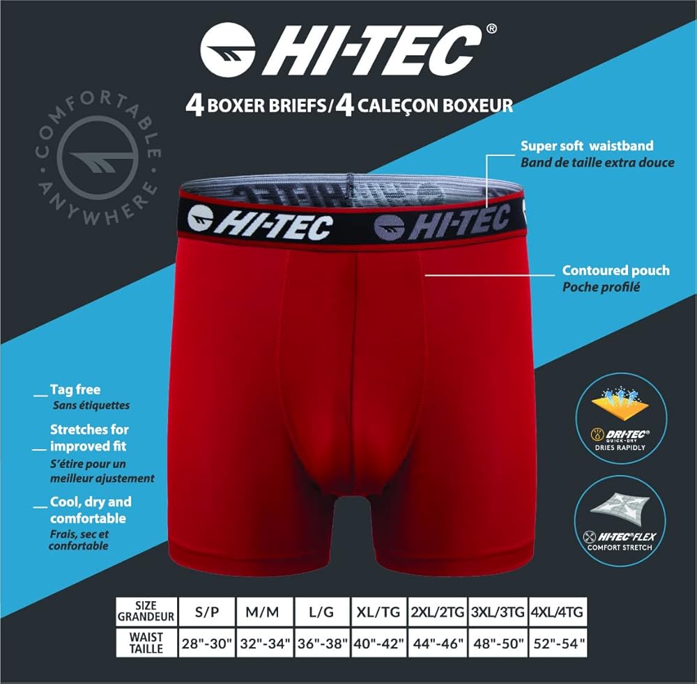 المحتويات: 4 سراويل داخلية للرجال من Hi-Tec. المقاسات متوفرة بمقاس صغير (29-31 بوصة)، متوسط (32-34 بوصة)، كبير (36-38 بوصة)، كبير جدًا (40-42 بوصة)، 2X-Large (44-46 بوصة) "بوصة)، 3X-Large (48-50 بوصة) و4X-Large (52-54 بوصة). يأتي الملاكمون في مجموعة متنوعة من الألوان، تتراوح من الأسود والبرتقالي والكحلي والأحمر والأزرق والرمادي.