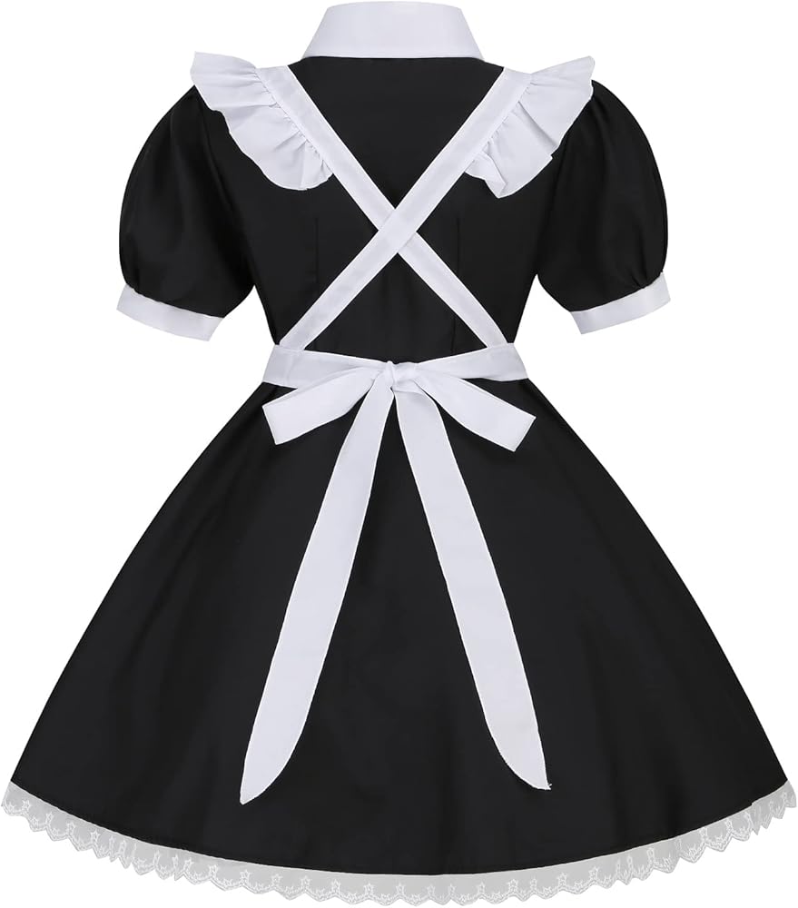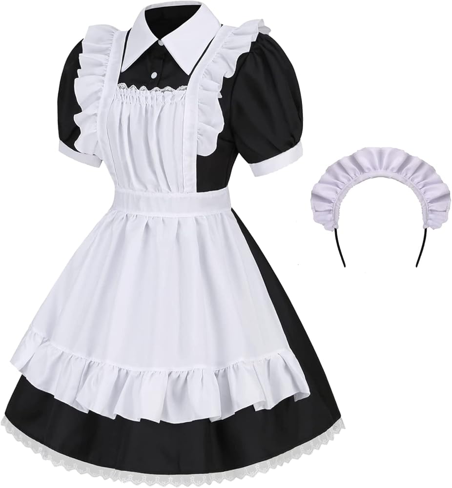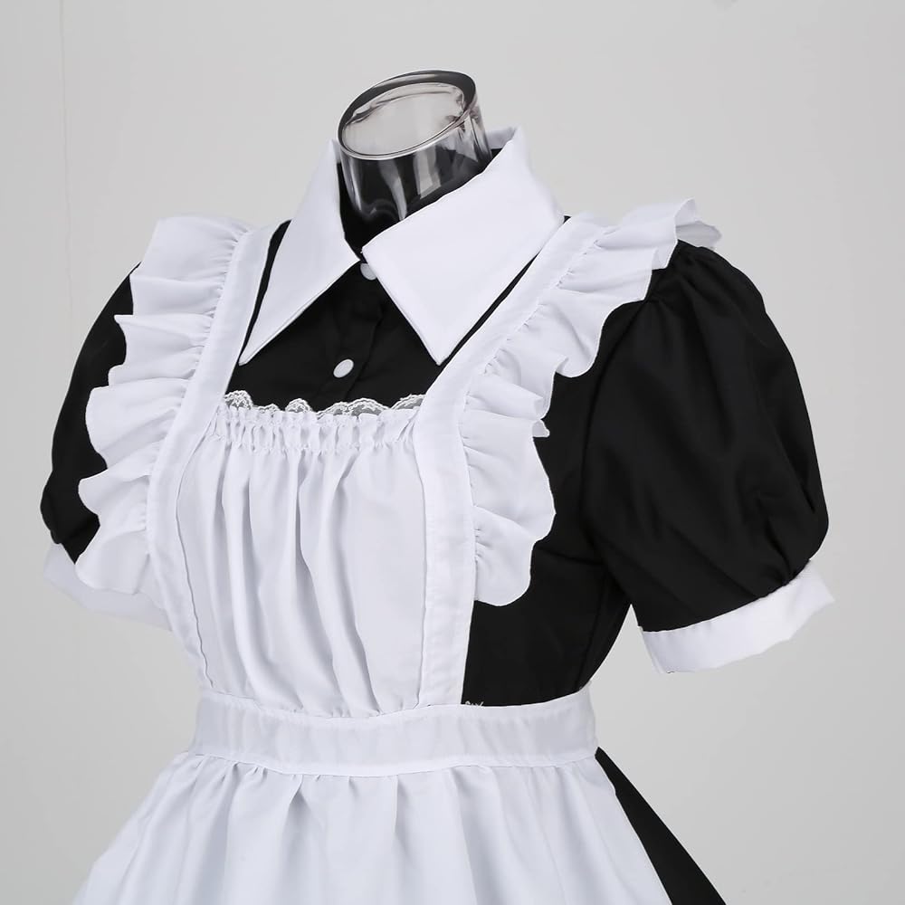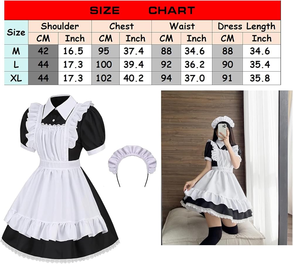【المميزات】يتميز زي الخادمة للبالغين بأكمام قصيرة وخصر عالي وياقة بيضاء. طراز نحيف، إذا كنت تفضل الفضفاض، فيرجى اختيار مقاس أكبر بدرجة واحدة.