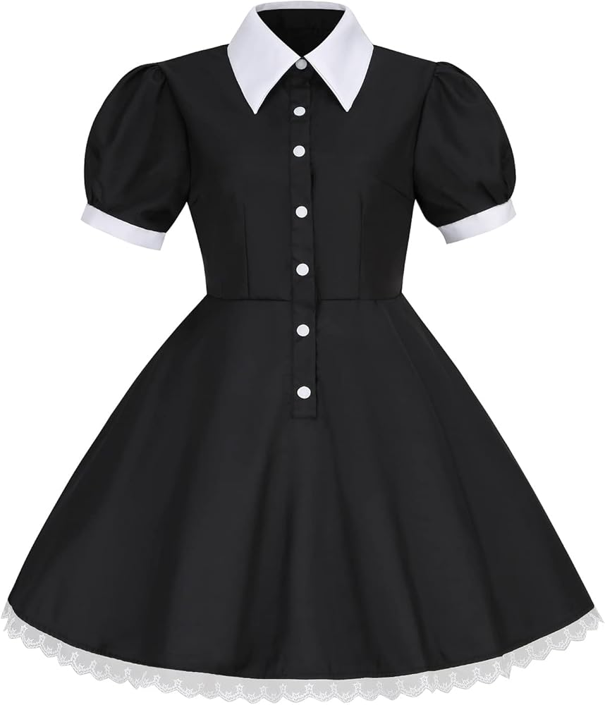 【الخامة: زي الخادمة النسائية مصنوع من نسيج البوليستر عالي الجودة، وهو ناعم ومسامي. لا تتركي زي الخادمة الخاص بك في خزانة الملابس بعد الحفلات التنكرية، فهو مناسب للارتداء اليومي كفستان فاخر.
