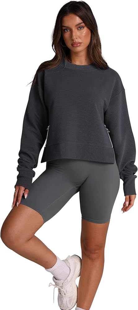 ☕الميزة: أزياء خريف نسائية 2024، ملابس شتوية للنساء، طول قصير، تفاصيل مضلعة، أكتاف منسدلة، سترة بقلنسوة قصيرة، سترة بغطاء للرأس بسحاب جانبي للسيدات، بلوفر برقبة دائرية، بلوزة قصيرة بأكمام طويلة، هوديس Y2k، بلوزات كبيرة الحجم للسيدات فضفاضة.