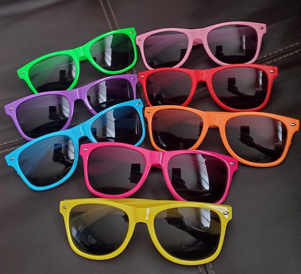 خيارات الألوان والمقاس: تأتي هذه النظارات الشمسية للحفلات في الثمانينات بـ 10 ألوان أنيقة مختلفة. متوفرة باللون الأحمر النيوني والأخضر والأسود والوردي والوردي الفاقع والأصفر والبرتقالي والأرجواني والفهد والأزرق. تأتي هذه النظارات الشمسية ذات الألوان الزاهية في مقاس واحد فقط، مقاس مناسب لمعظم الأطفال والمراهقين والبالغين.