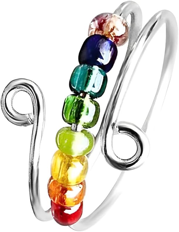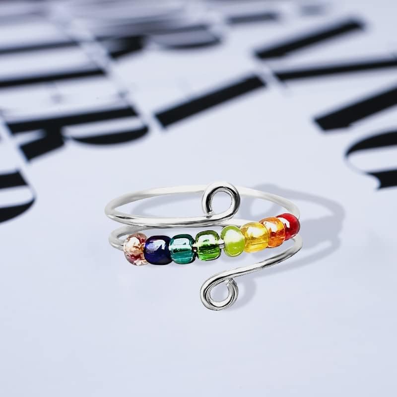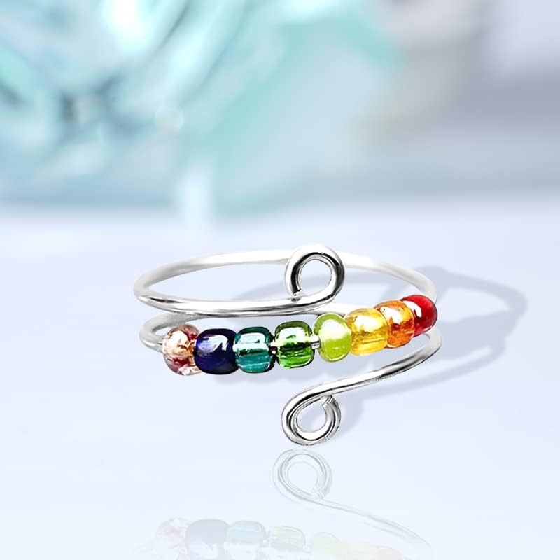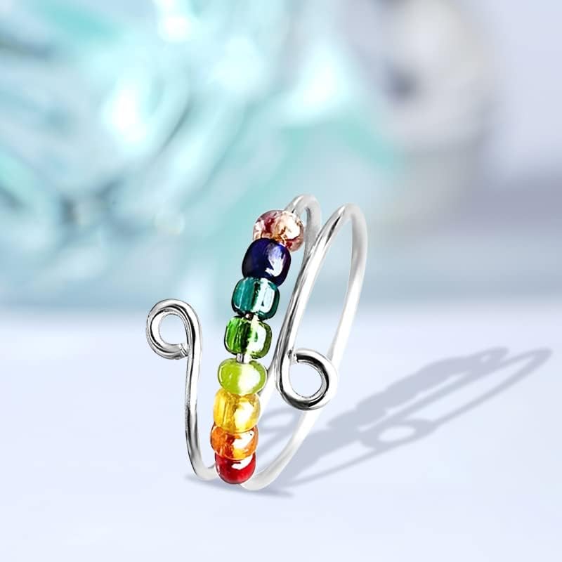 عندما ترتدي خاتم القلق الدوار هذا، يمكنك تدوير الخرز لتخفيف قلقك، أو مجرد اللعب به من أجل المتعة، 7 خواتم شاكرا للفتيات لتحسين صحتك الروحية والعقلية والجسدية