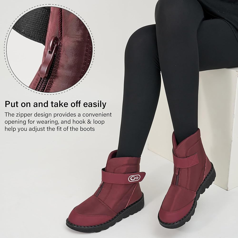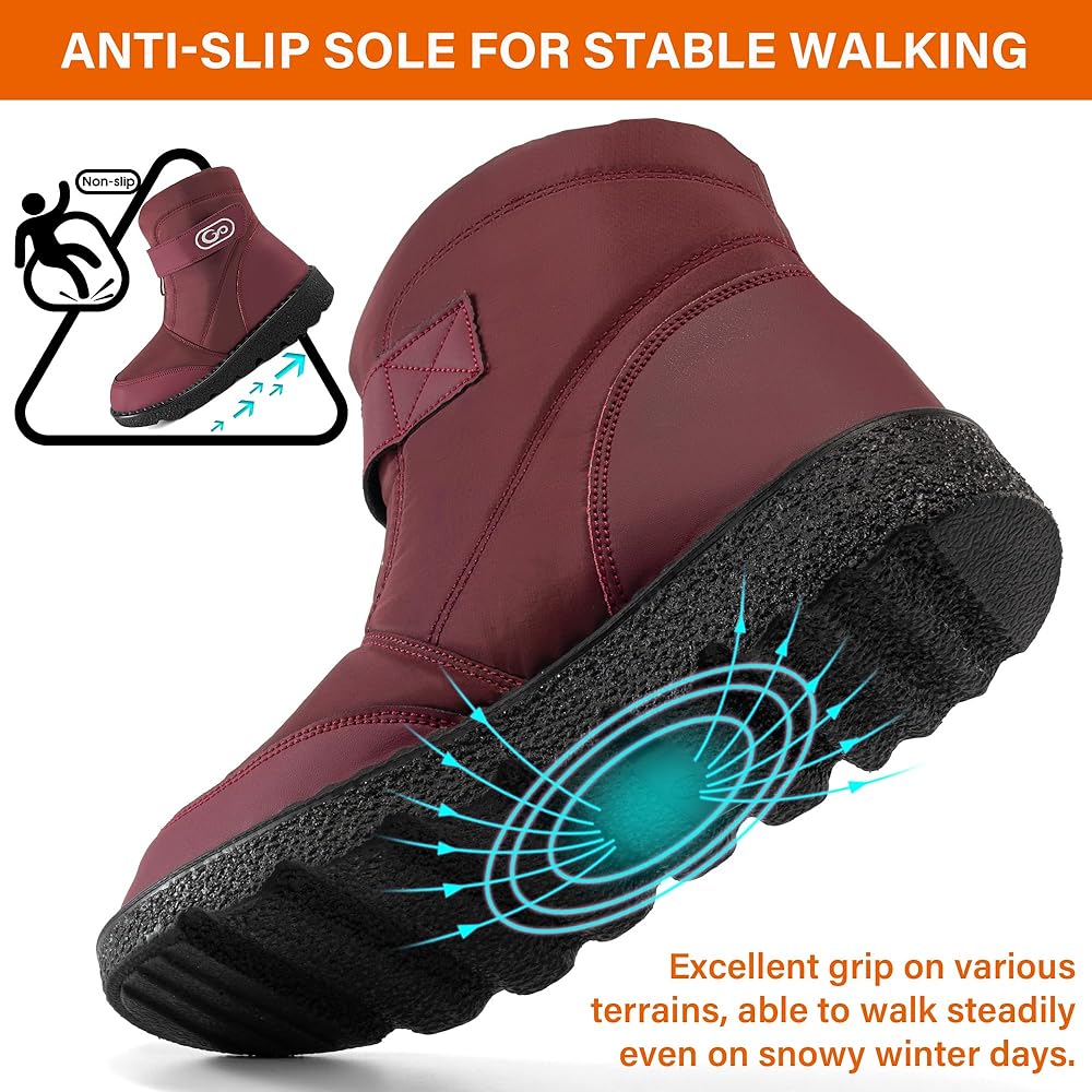 • حذاء مقاوم للماء: أحذية الثلج هذه للسيدات مصنوعة من قماش أكسفورد المقاوم للماء الذي يطرد المطر أو الثلج أو أي سوائل أخرى، مما يضمن الراحة الجافة طوال اليوم وسهل التنظيف بقطعة قماش.