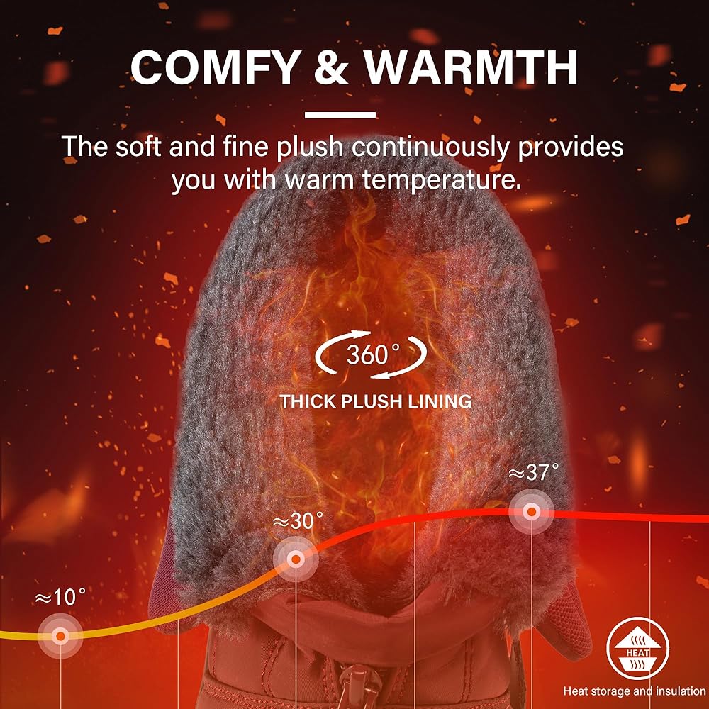 • مبطنة بالكامل بالفرو: أحذية الثلج النسائية مبطنة من الأعلى إلى أخمص القدمين بفرو صناعي فاخر، مما يزيد من الراحة والقدرة الحرارية للأحذية ويوفر دفء طويل الأمد لقدميك في أيام الشتاء الباردة.