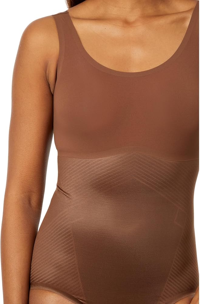 • The Spanx Thinstincts 2.0 Tank Panty Bodysuit is designed to be the perfect lightweight shaping layer. Plus it offers single-layer targeted shaping that's designed to wrap around your body and target your tummy and sides.