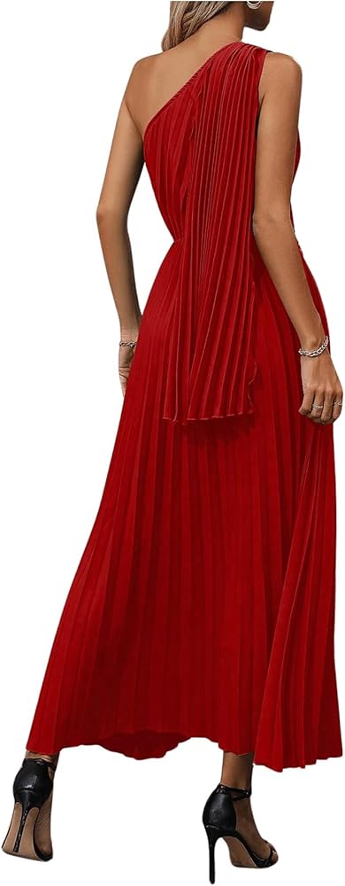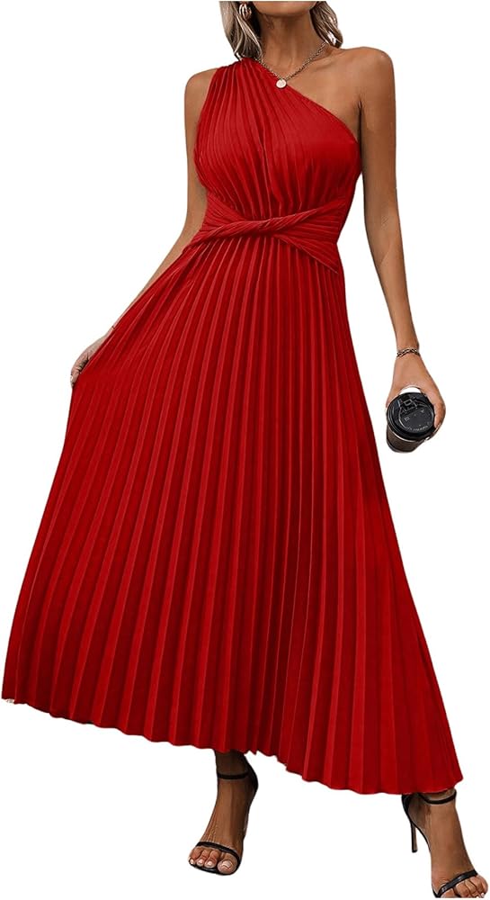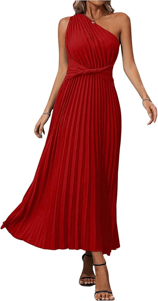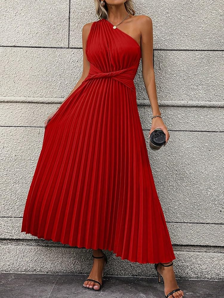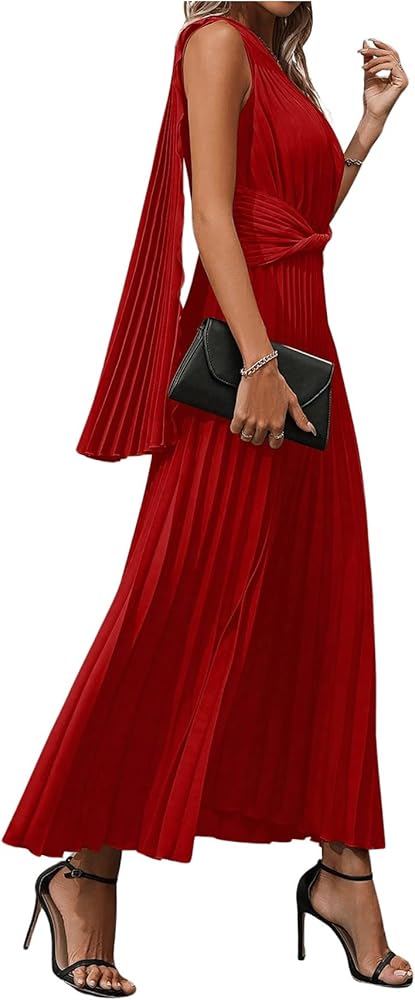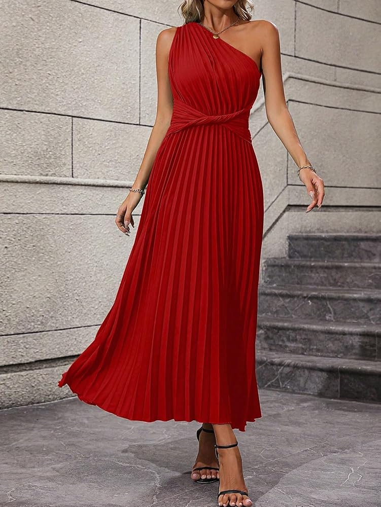 - التصميم: بدون أكمام، كتف واحد، رقبة غير متماثلة، مقدمة ملتوية، فستان طويل بكسرات