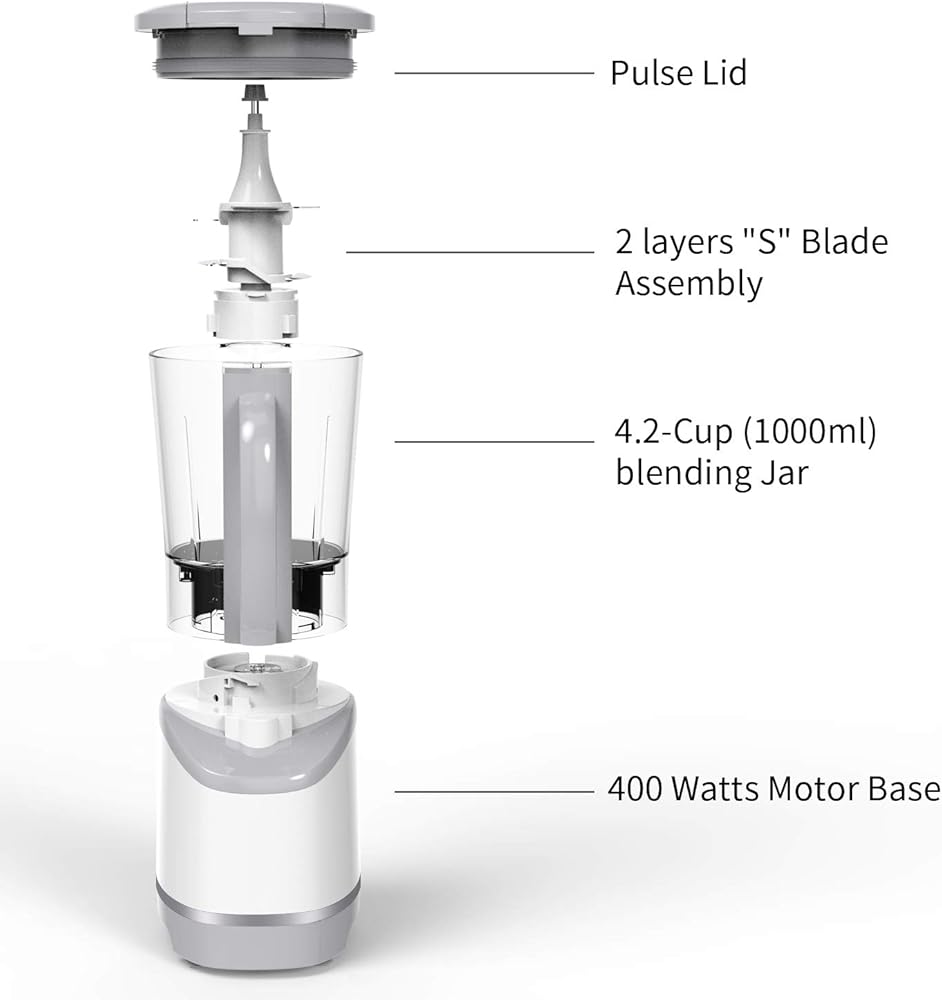 خلاط لا ريفوز متعدد الوظائف على سطح الطاولة بقدرة 400 وات مع وعاء تقطيع سعة 4.2 كوب، للمزج والخلط والفرم، باللون الأبيض