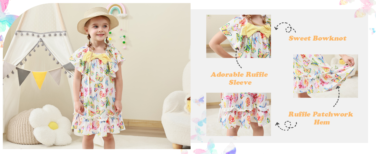 - المقاس: فستان اللعب المكشكش للفتيات مناسب للأعمار من 2 إلى 6 سنوات.