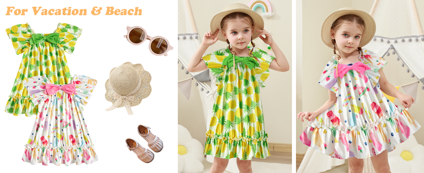 - التصميم: مكشكش وفيونكة وطباعة - الفستان الصيفي المطبوع يجلب المزيد من المرح لحياة فتاتك اليومية، ويجعل فتاتك جميلة ورائعة.