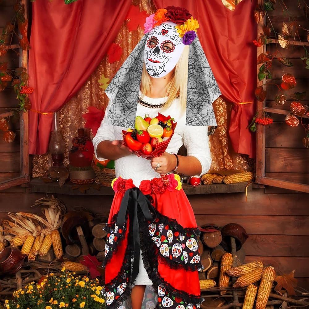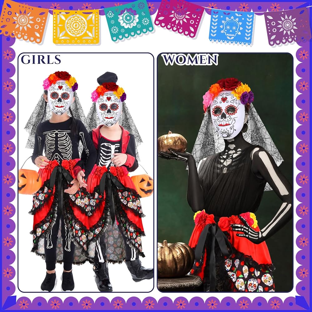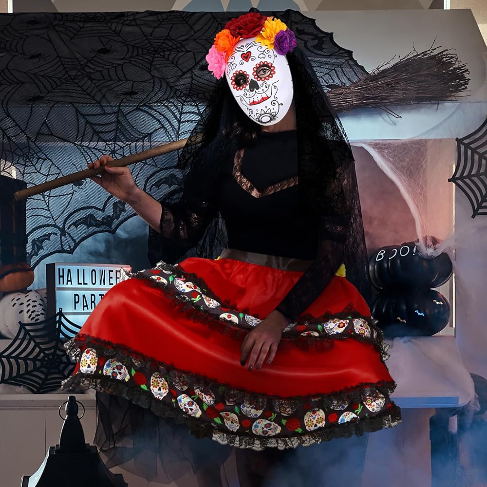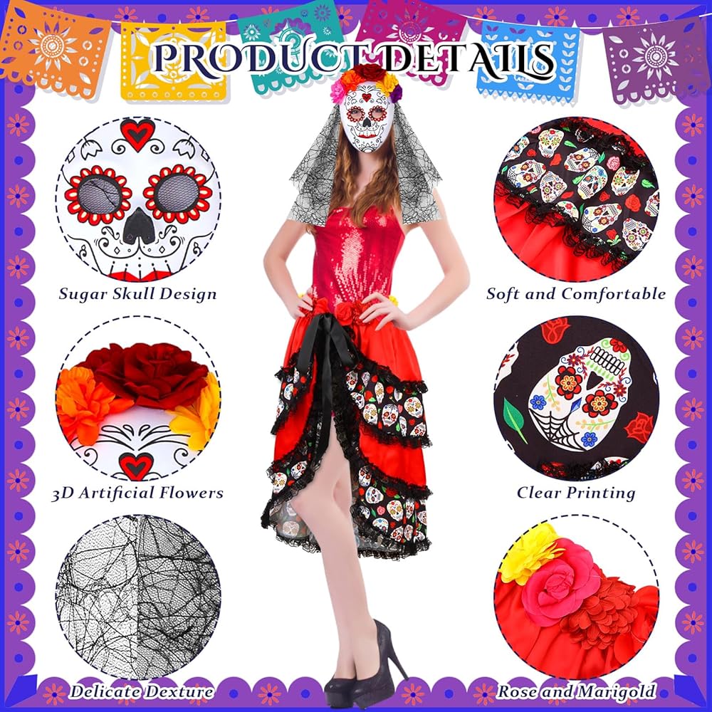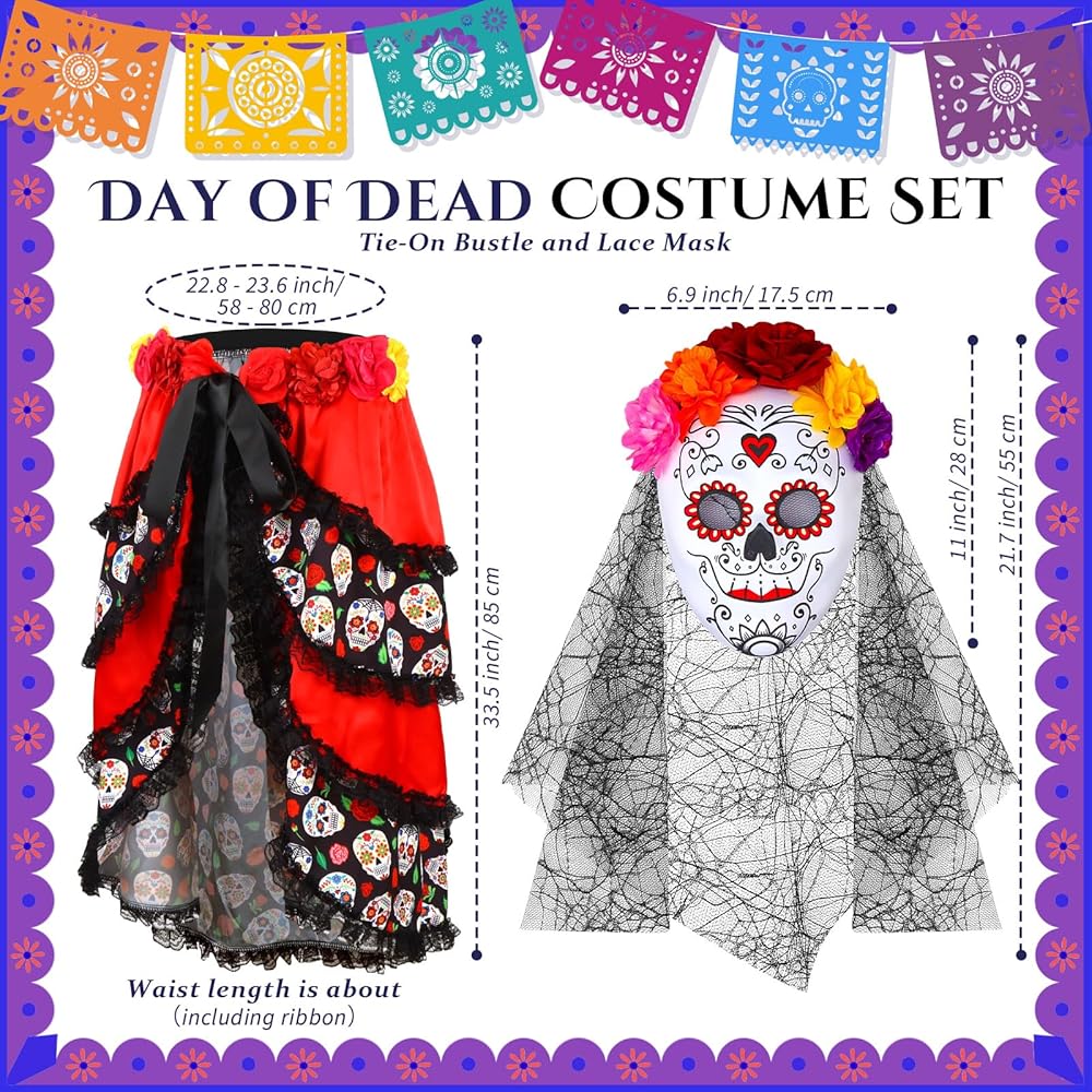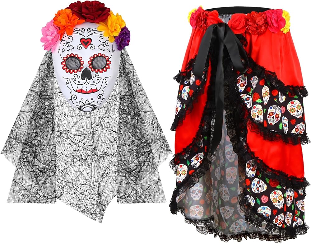 مجموعة الأزياء الكاملة: تحتوي العبوة على قطعة واحدة من قناع يوم الموتى مع وشاح وقطعة واحدة من ربطة العنق على تنورة صاخبة، مزيج كامل لك لخلق مظهر يوم الموتى