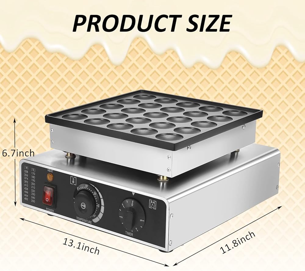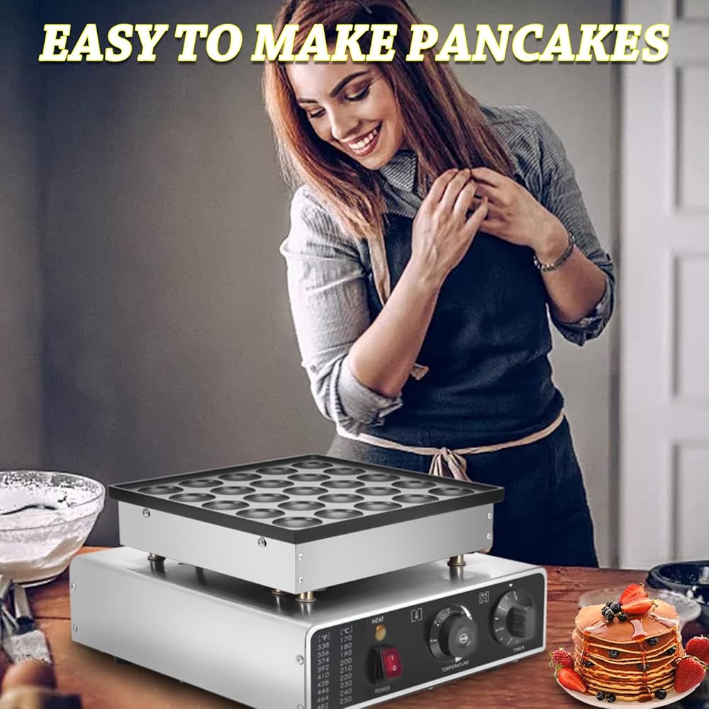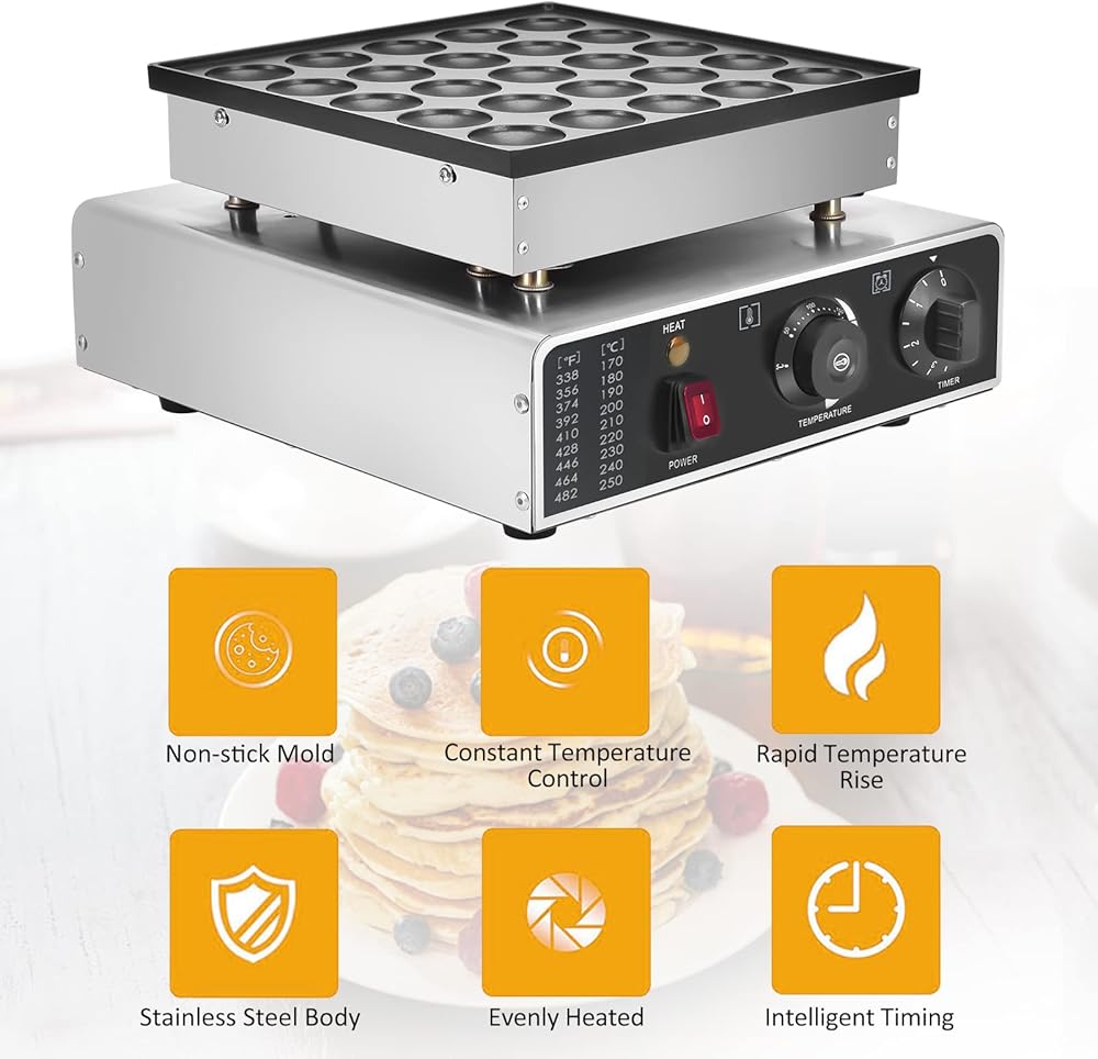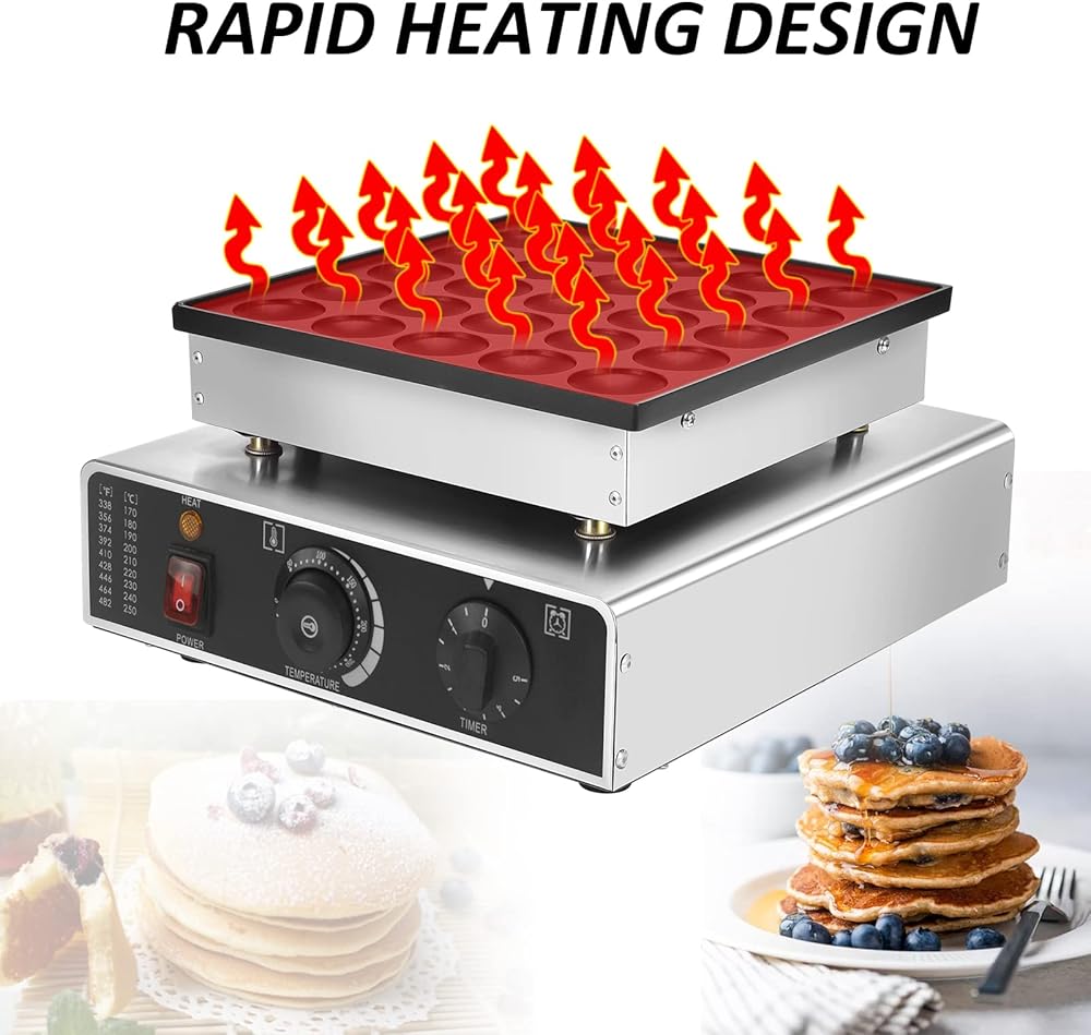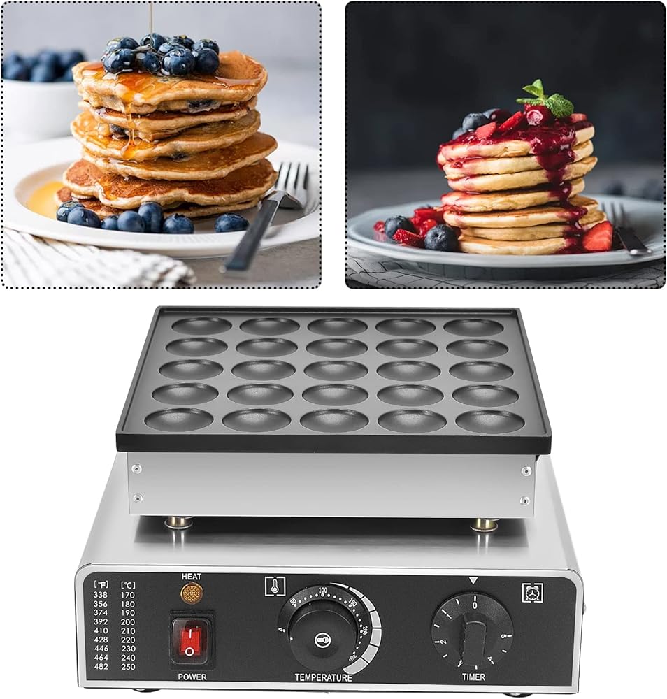 Panghuhu88 25 قطعة من صانع الفطائر الهولندية الصغيرة، ماكينة صنع الكعك الكهربائية غير اللاصقة بقدرة 950 وات، ماكينة صنع الفطائر Dorayaki من Poffertje للمخبوزات والمنزل والمطبخ ومطعم الوجبات الخفيفة (قابس أمريكي 110 فولت)