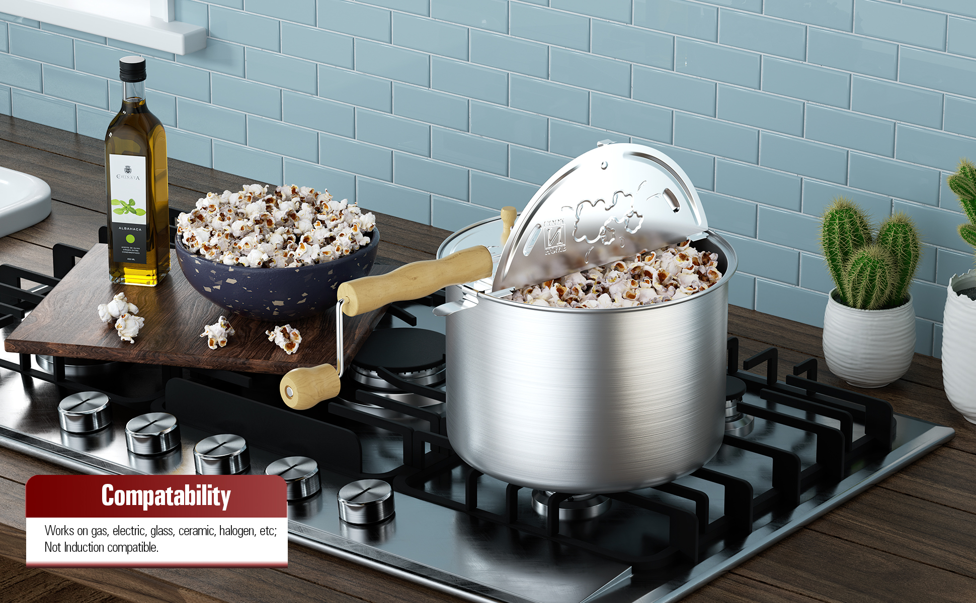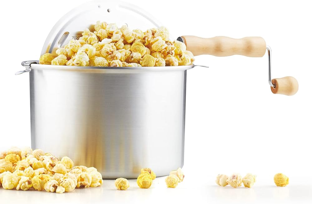 يحتوي الغطاء على فتحات بخار للحفاظ على الفشار مقرمش؛ مقبض خشبي ومقبض يبقى باردًا ومريحًا