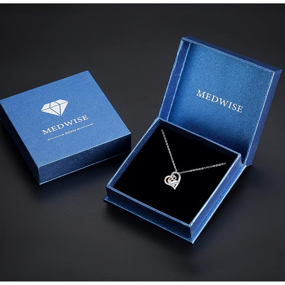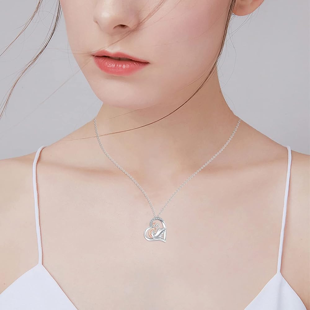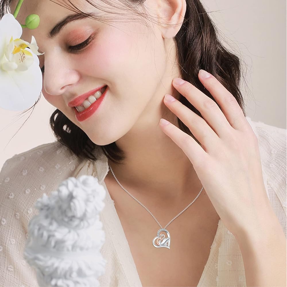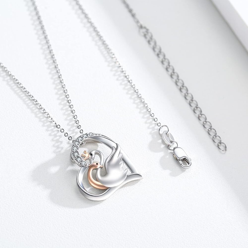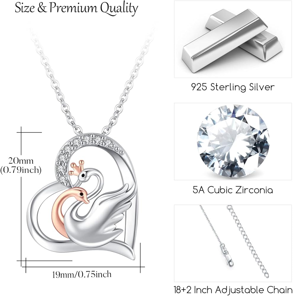 ميدوايز قلادة على شكل بجعة، قلادة من الفضة الاسترليني على شكل حيوان مع قلب بجعة ذهبية وردية للازواج، هدايا مجوهرات للنساء والفتيات والزوجة، فضة استرلينية، زركونيا مكعب