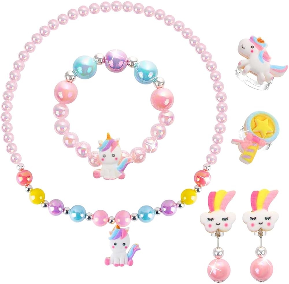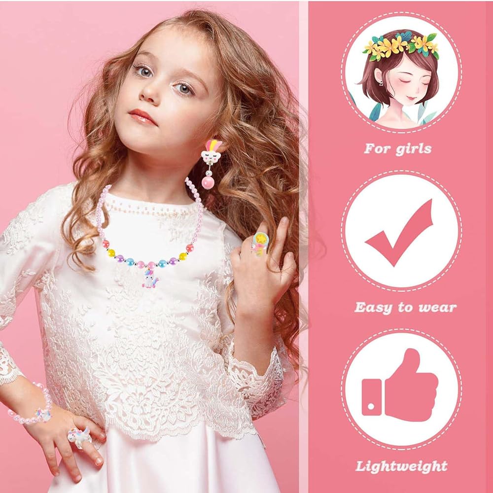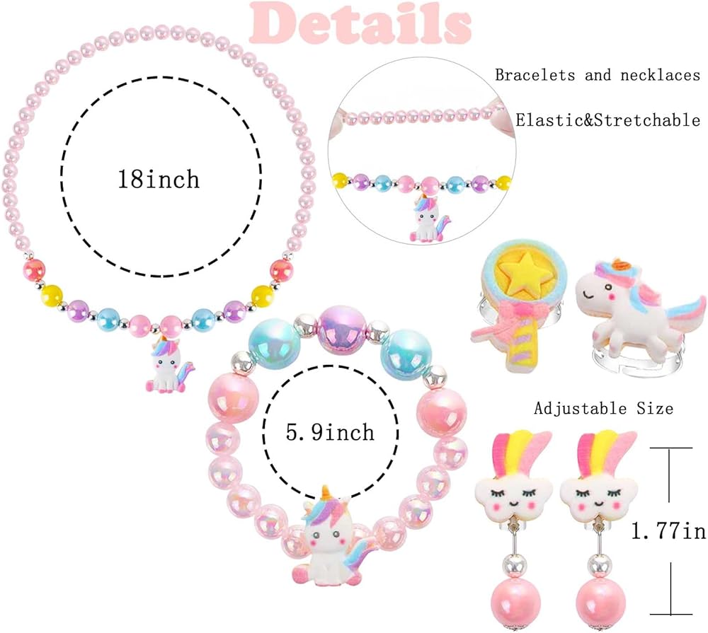 【الطول والمقاس】قطر قلادة يونيكورن 18 بوصة، وقطر السوار 5.9 بوصة. يتميز بتصميم شريط مطاطي يمكن تعديله بسهولة لملاءمة مريحة. يمكن تعديل عرض الحلقة. مناسبة لمعظم الفتيات.