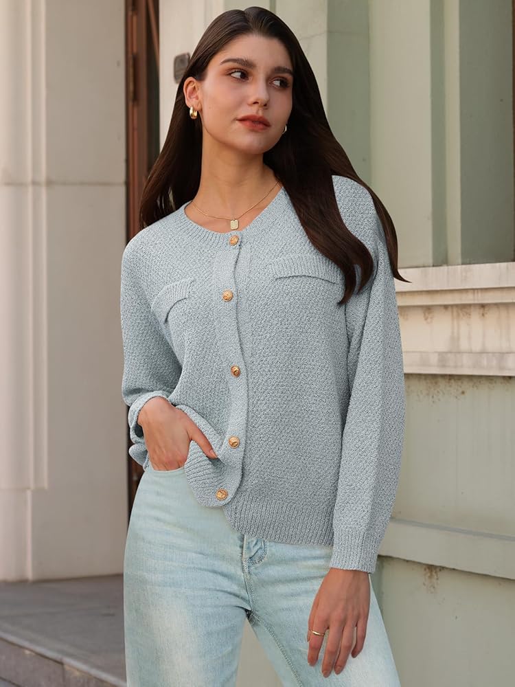 ❤الميزات الرئيسية: سترة خريف 2023 هذه مصممة بأكمام طويلة، ولون ثابت، ورقبة دائرية، وأساور مضلعة، وأزرار سفلية، وحياكة فريدة من نوعها، مثالية لإضافة طبقة مريحة وأنيقة إلى أي ملابس. مصنوعة من مواد ناعمة وعالية الجودة، فهي مريحة وأنيقة، سترة قصيرة غير رسمية تجعلك عصرية ومريحة.